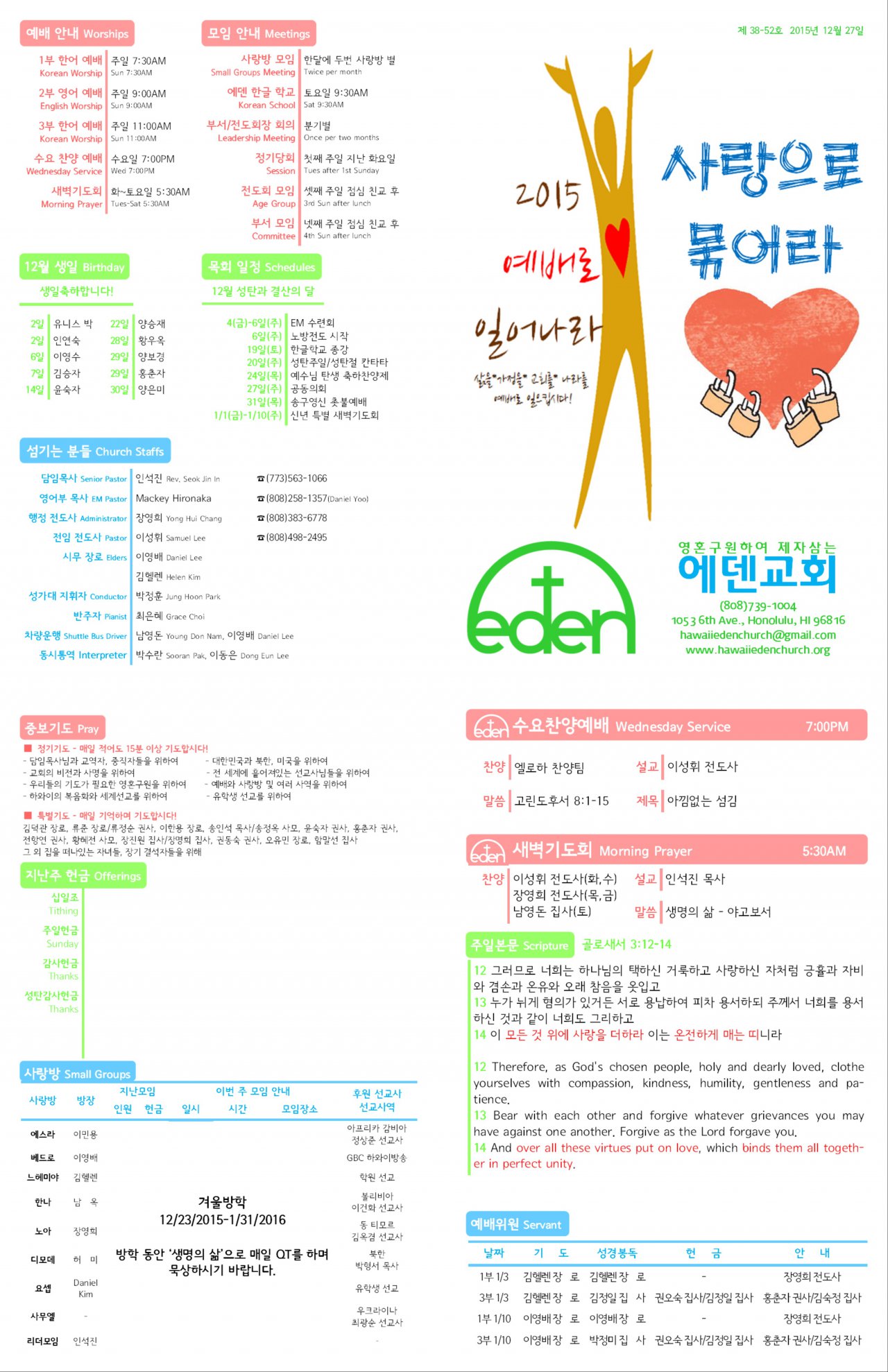 2015/12/27 하와이한인장로교회 에덴교회 주보