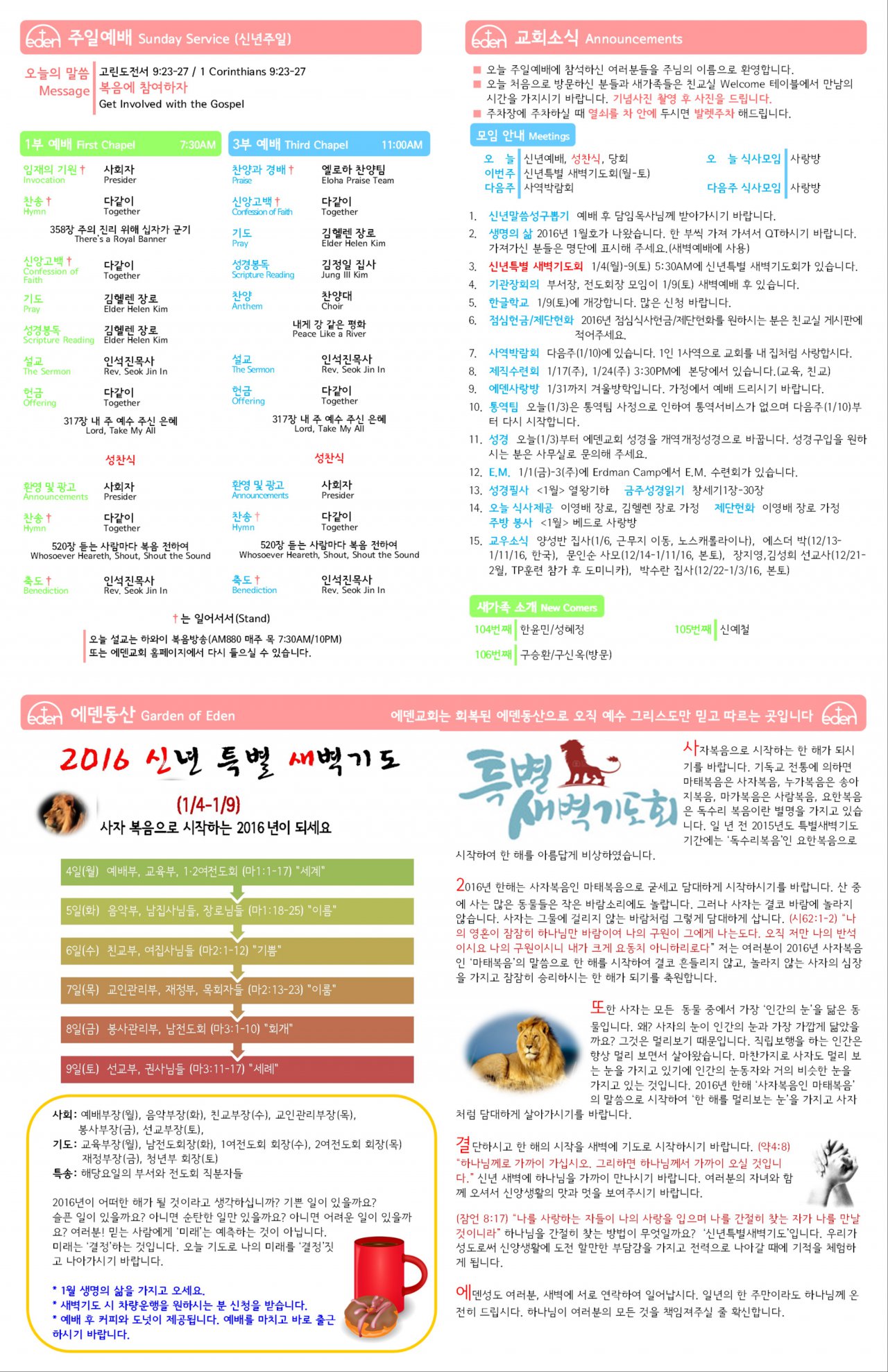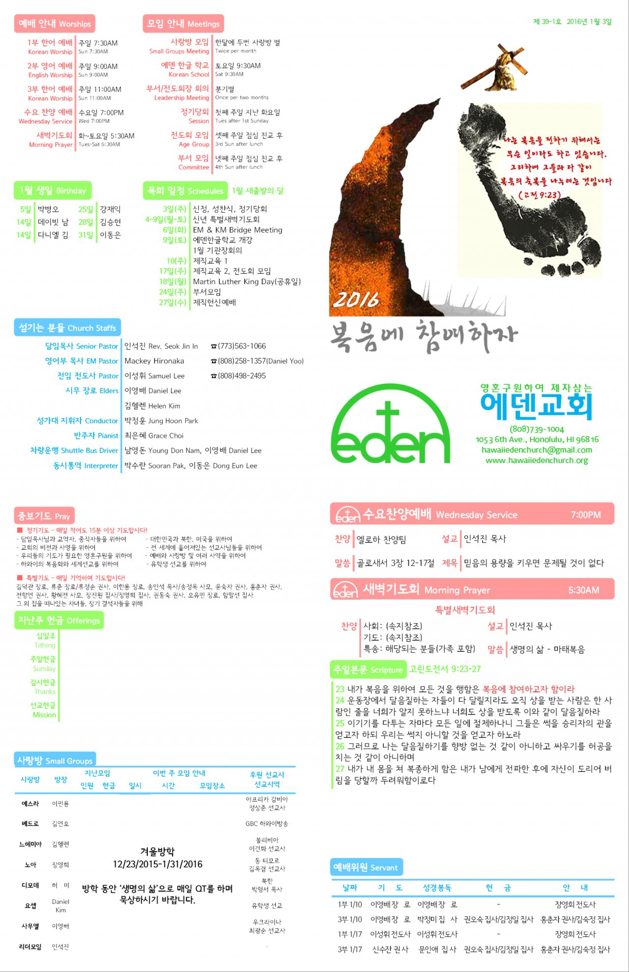 2016/01/03 하와이한인장로교회 에덴교회 주보