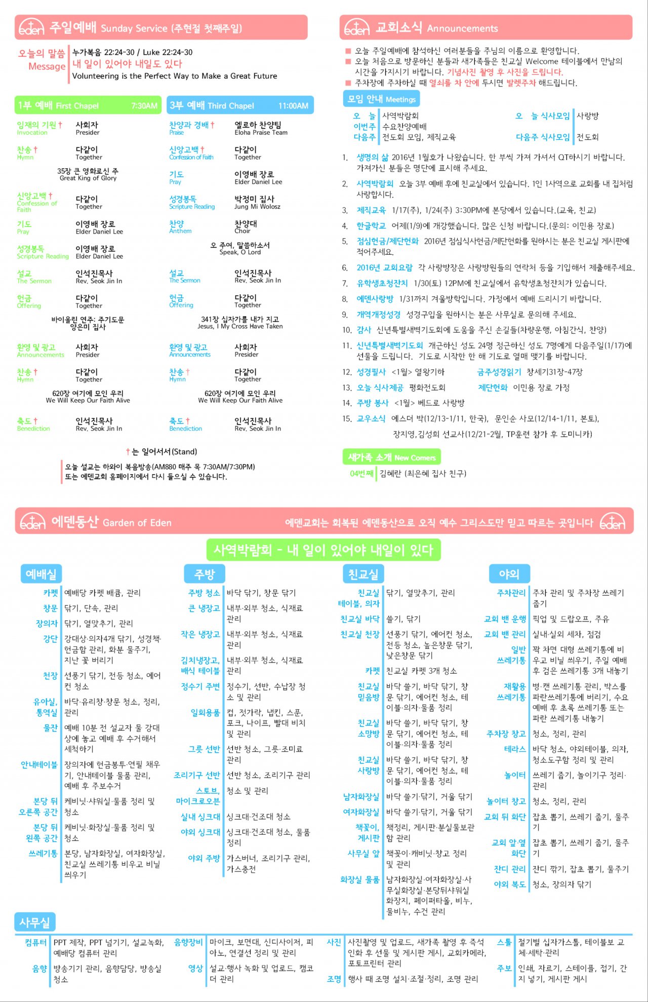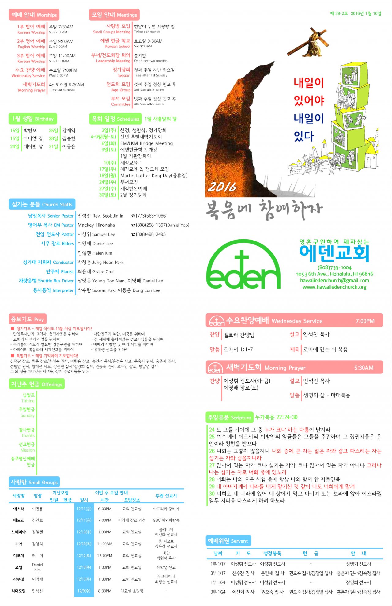 2016/01/10 하와이한인장로교회 에덴교회 주보