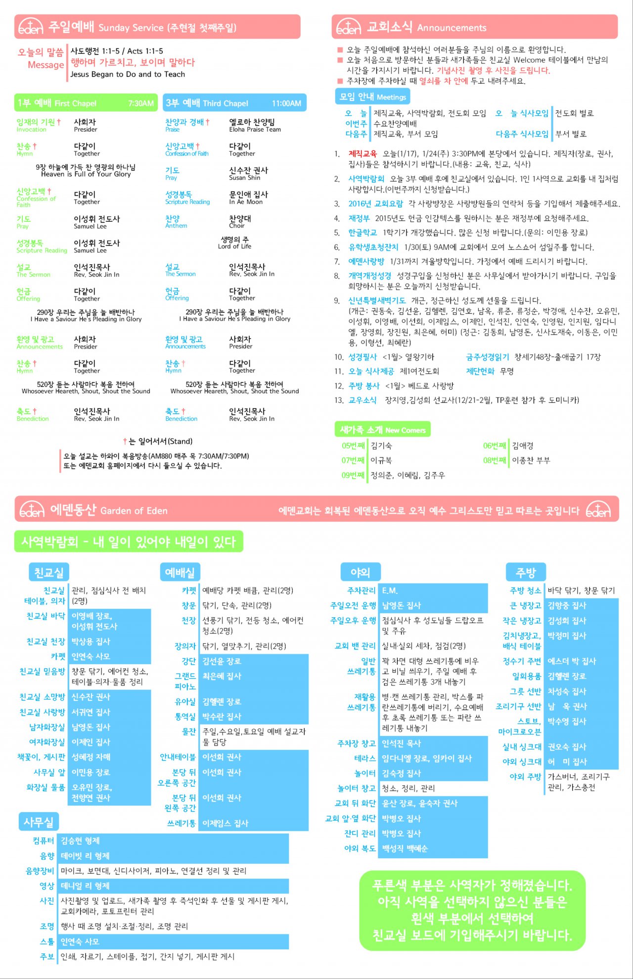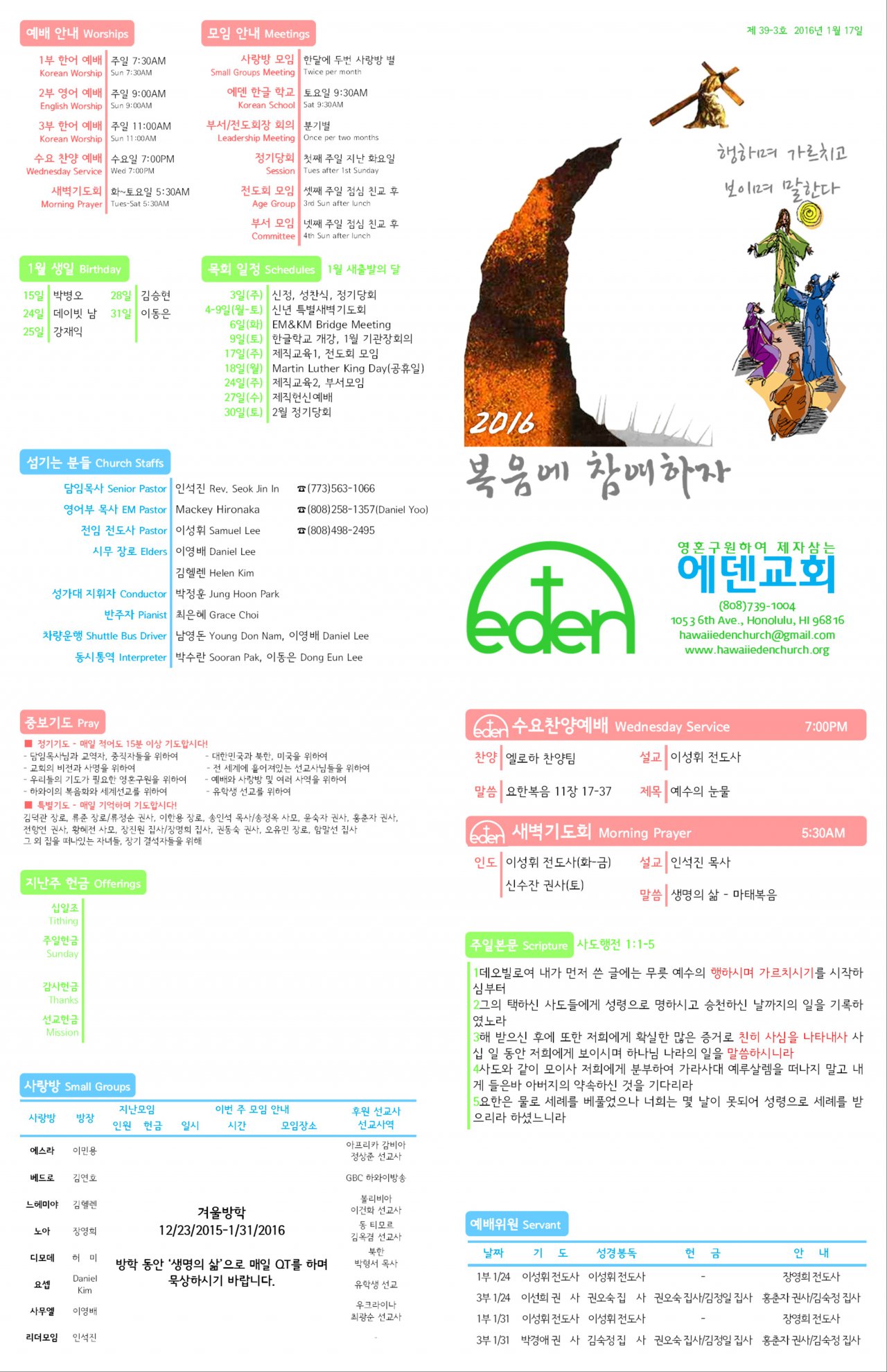 2016/01/17 하와이한인장로교회 에덴교회 주보
