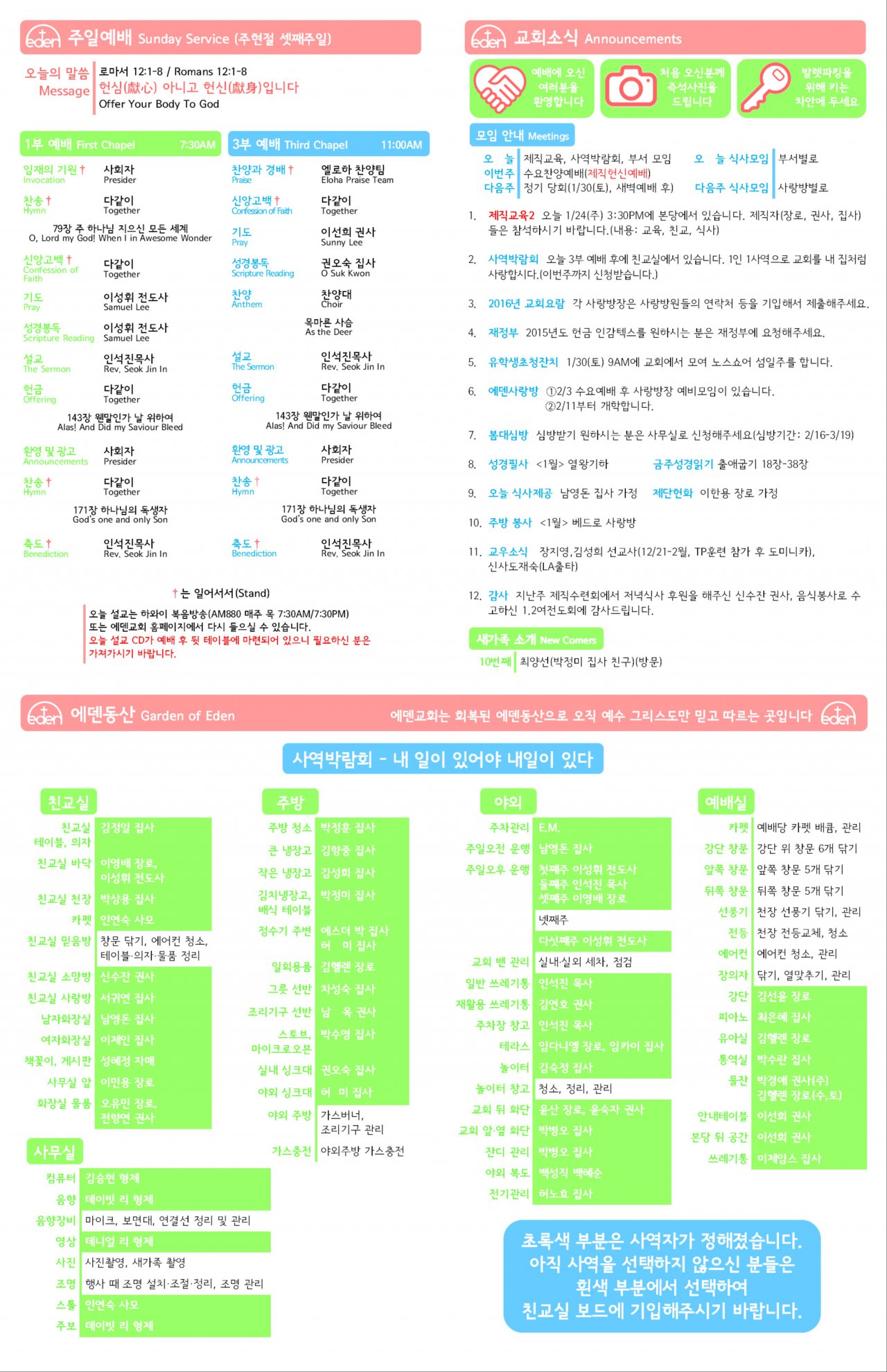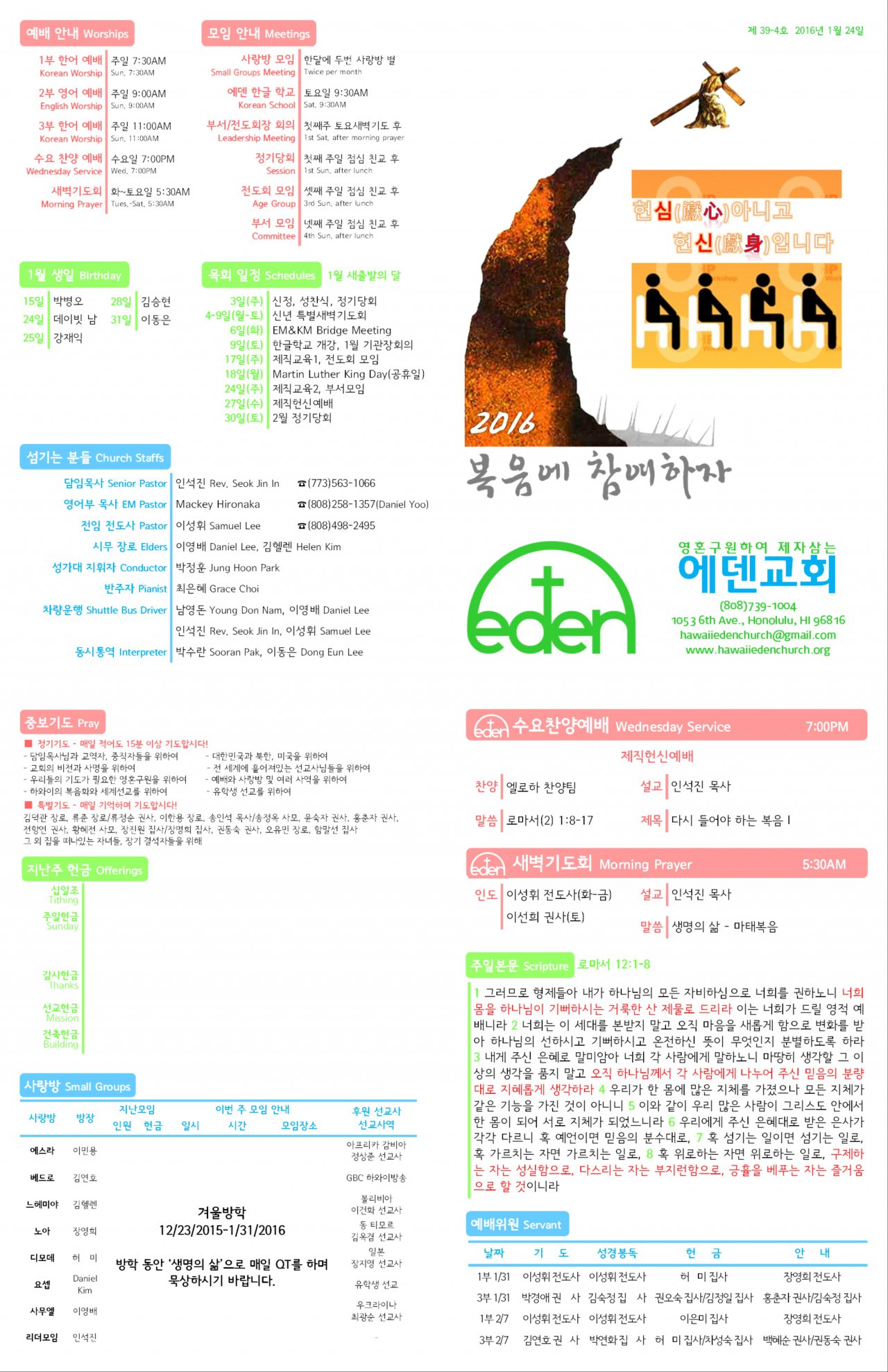 2016/01/24 하와이한인장로교회 에덴교회 주보