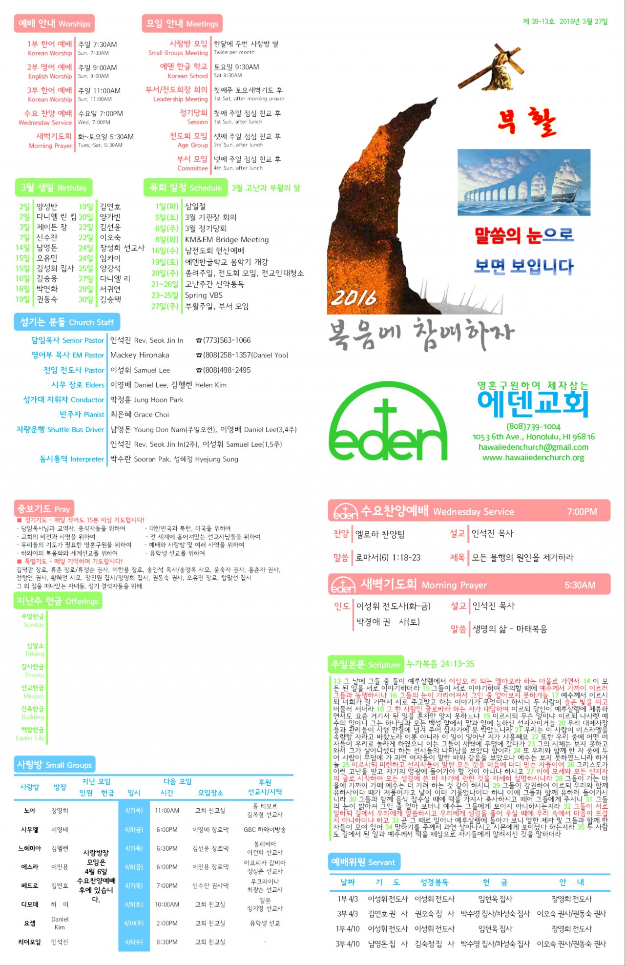 2016/03/27 하와이한인장로교회 에덴교회 주보