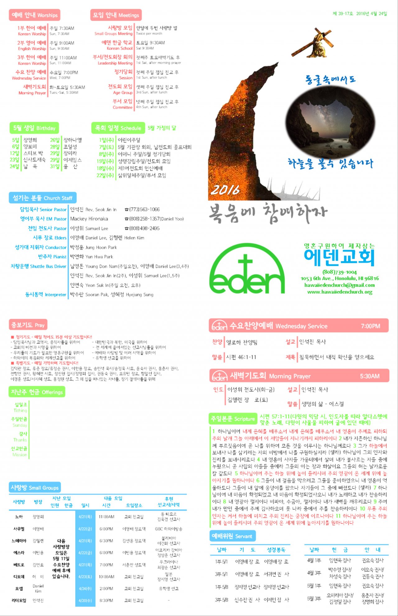 2016/04/24 하와이한인장로교회 에덴교회 주보