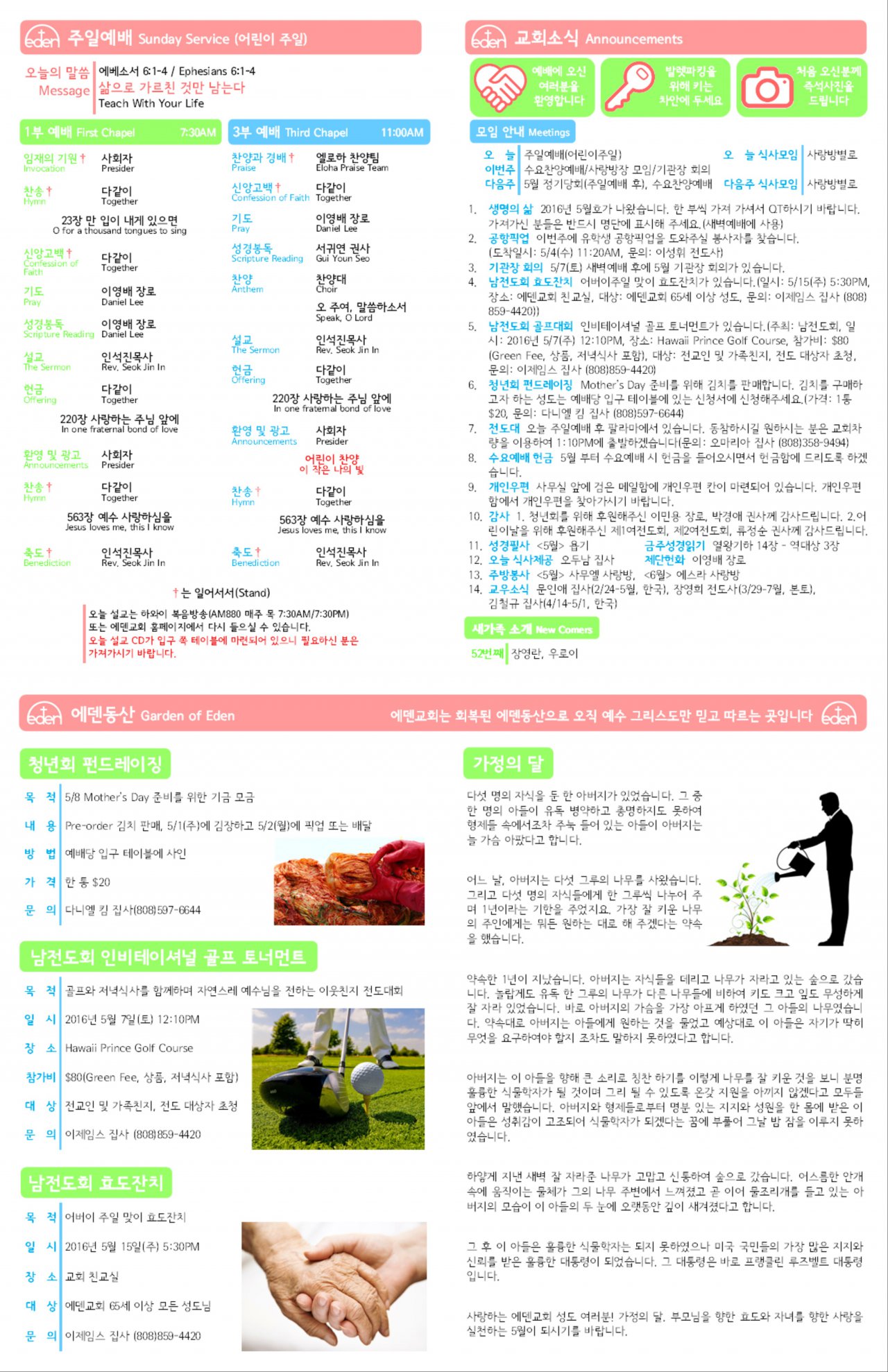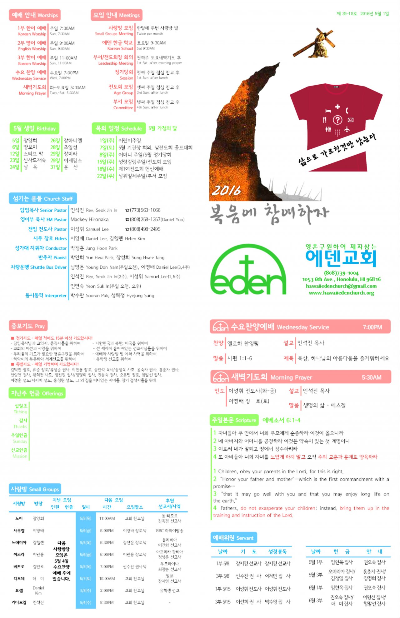 2016/05/01 하와이한인장로교회 에덴교회 주보