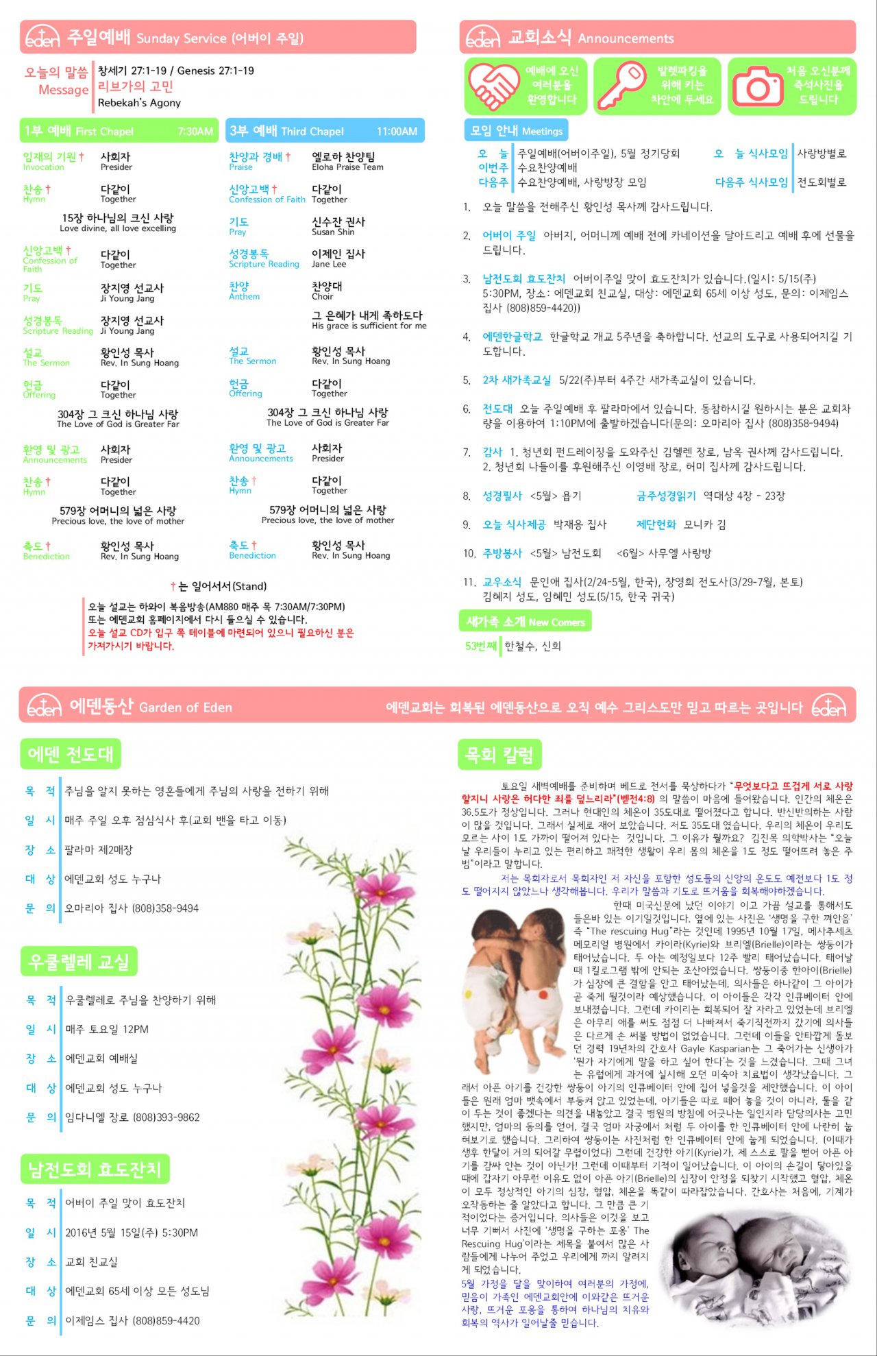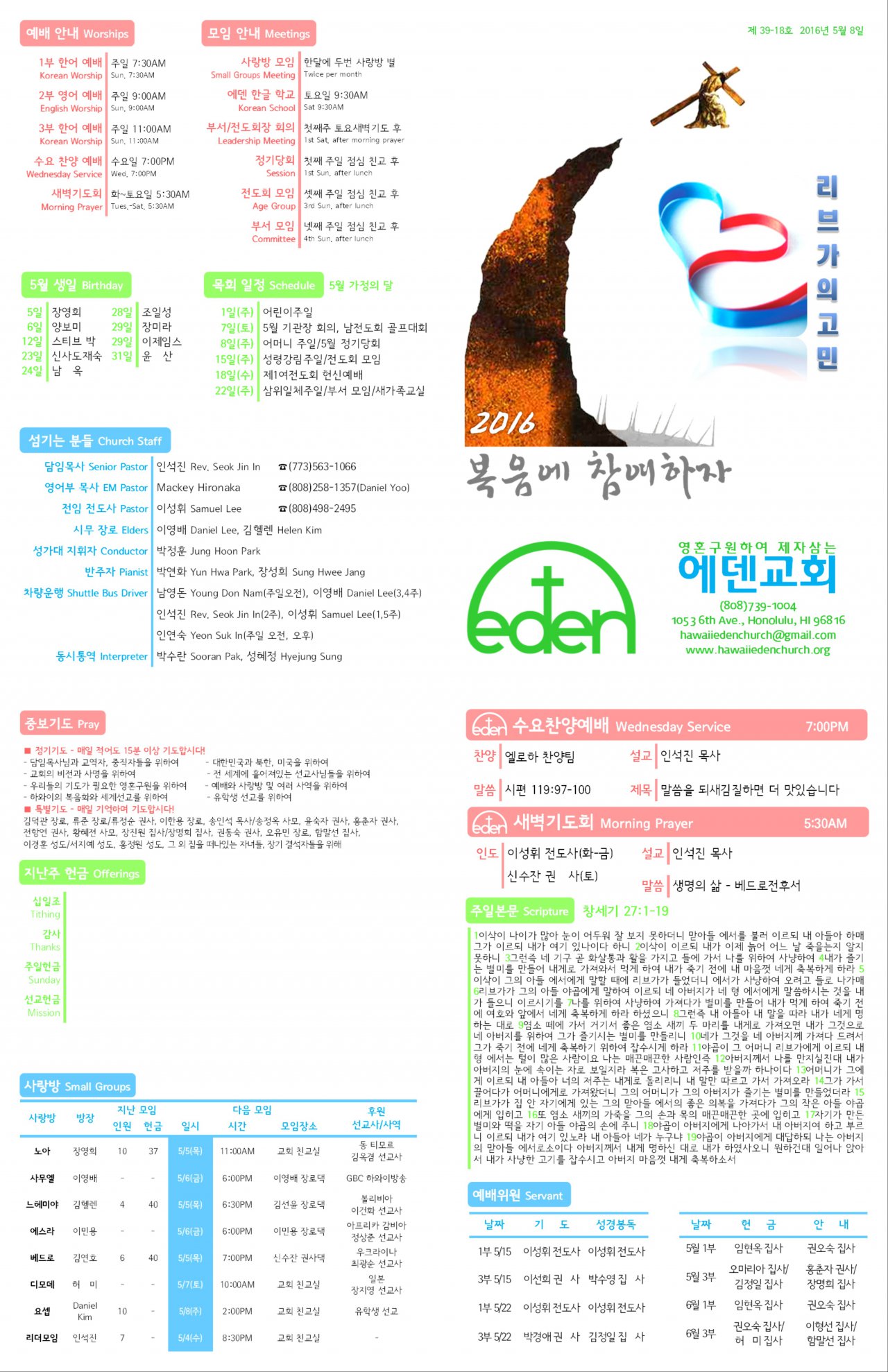 2016/05/08 하와이한인장로교회 에덴교회 주보