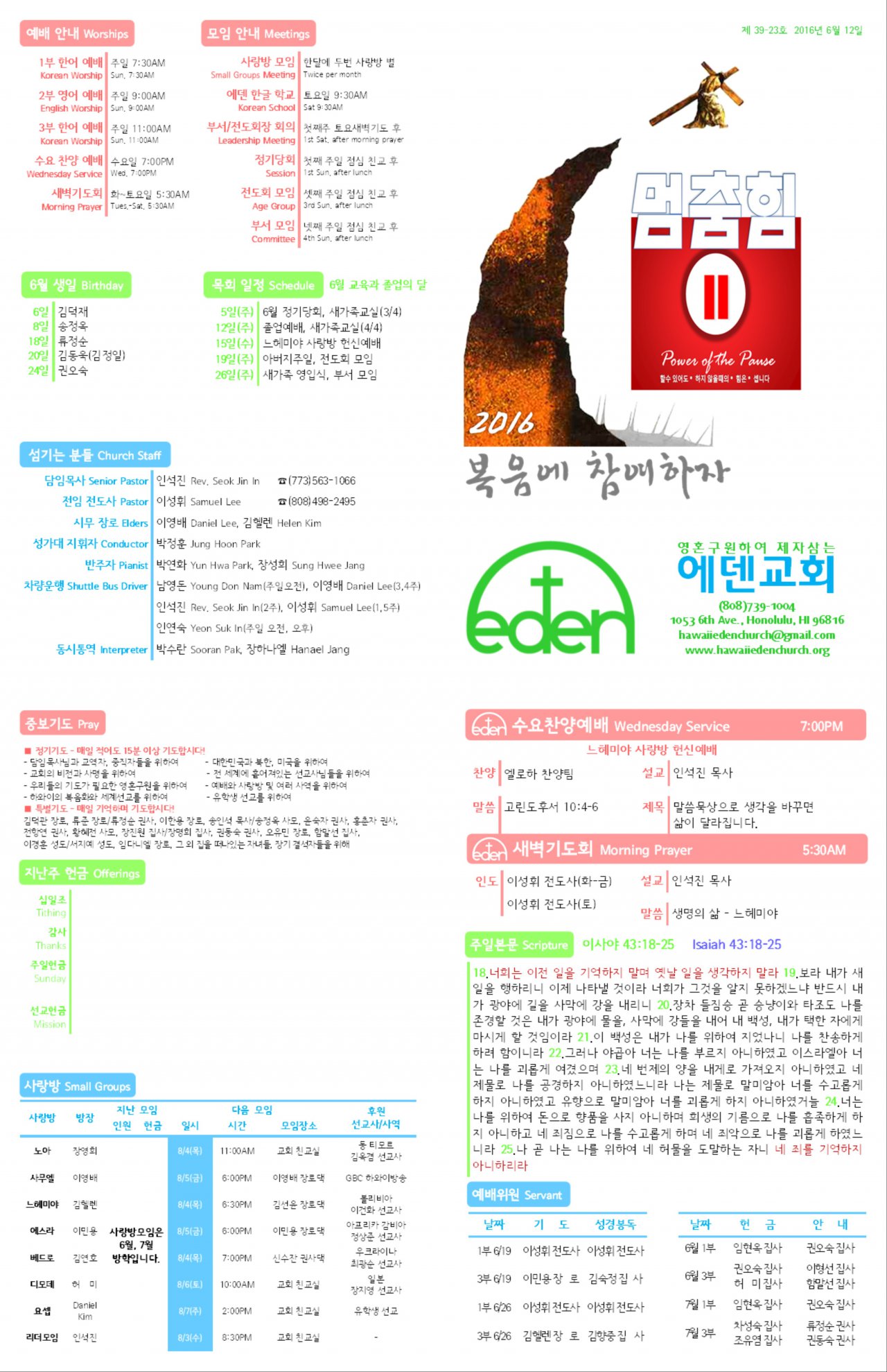 2016/06/12 하와이한인장로교회 에덴교회 주보