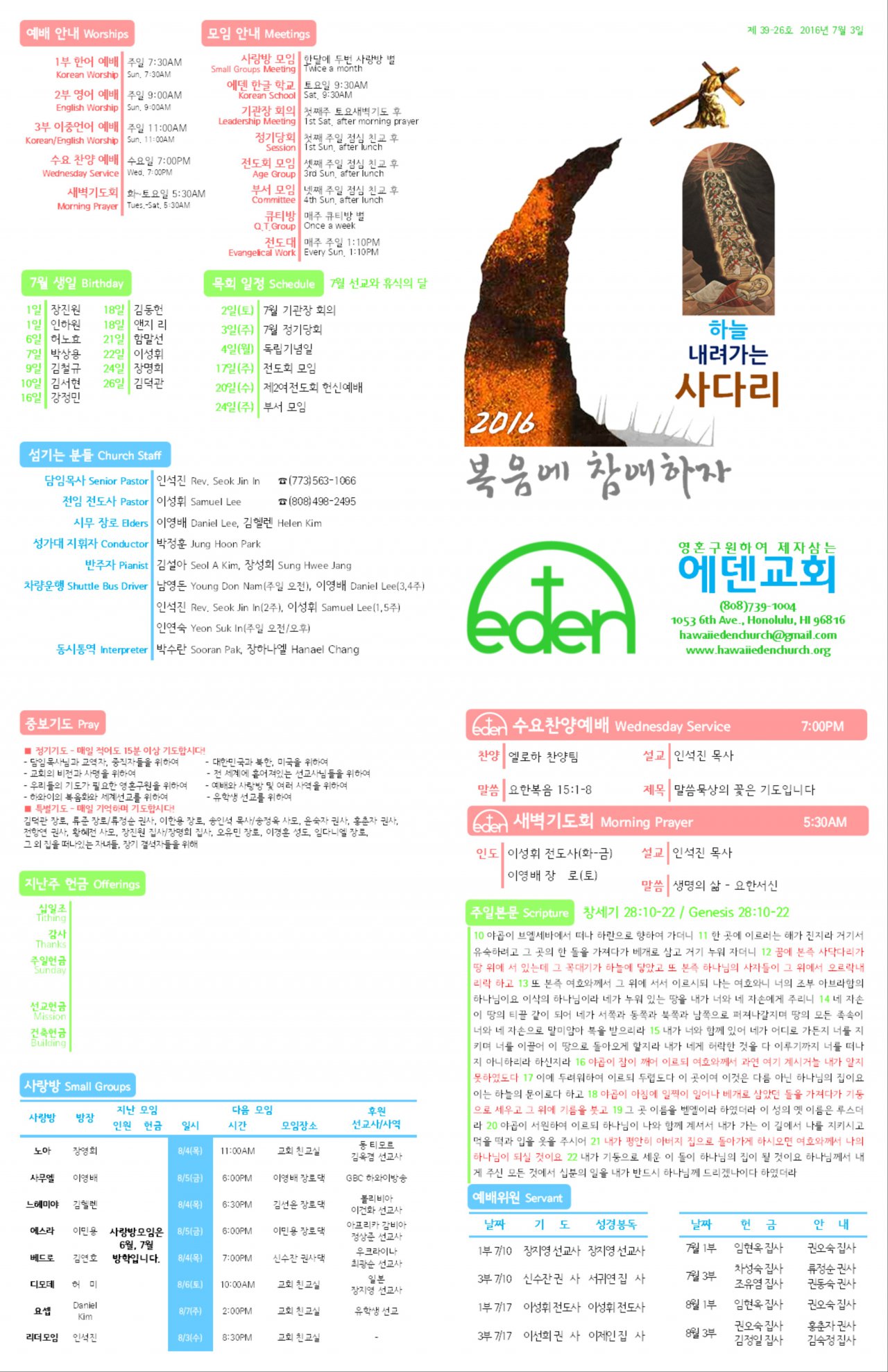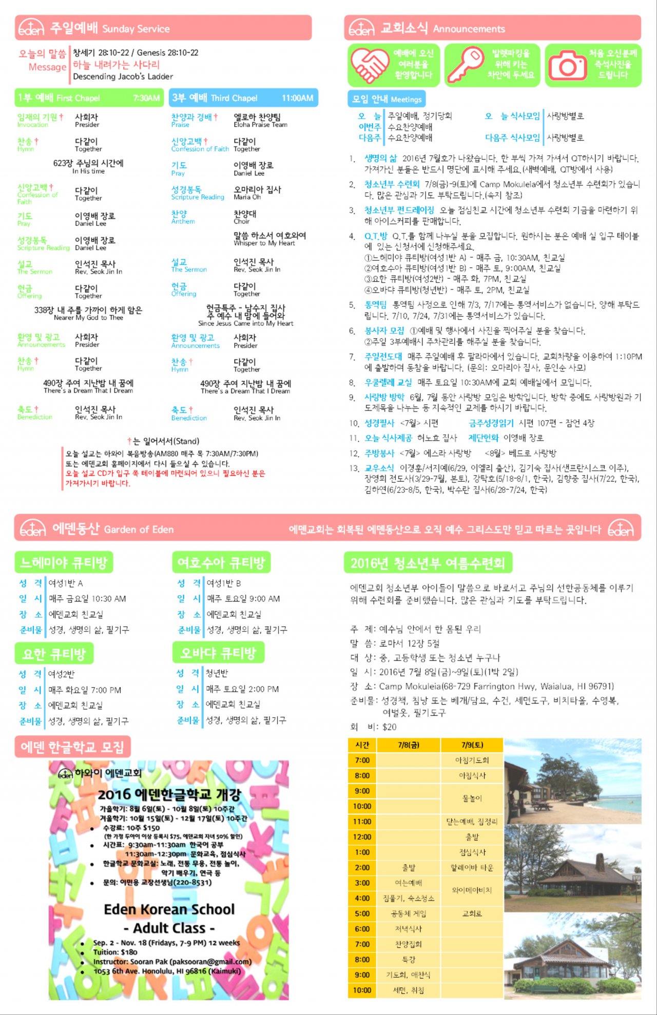 2016/07/03 하와이한인장로교회 에덴교회 주보