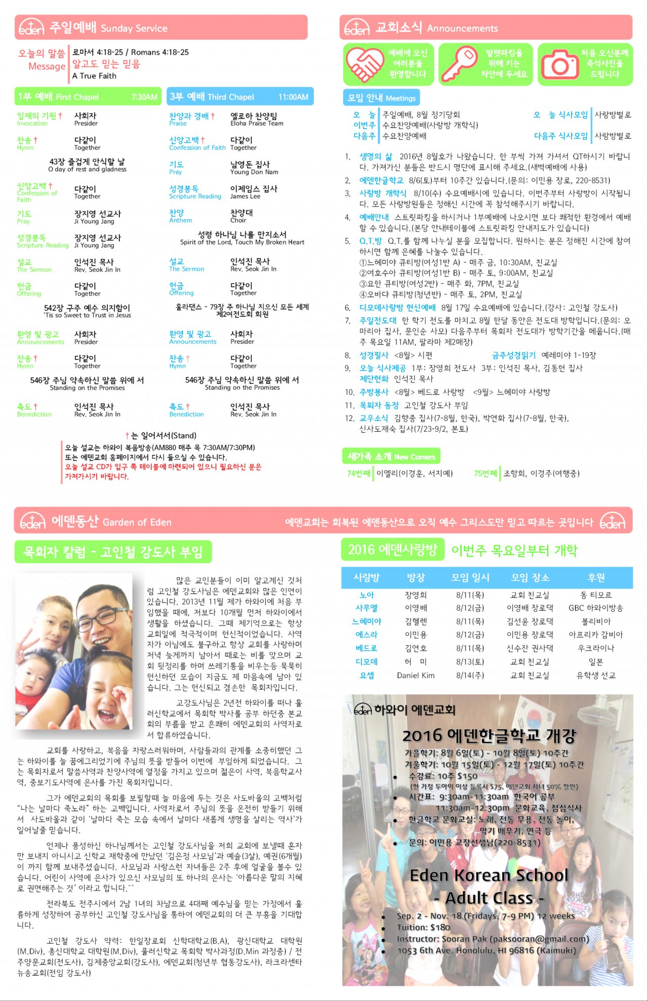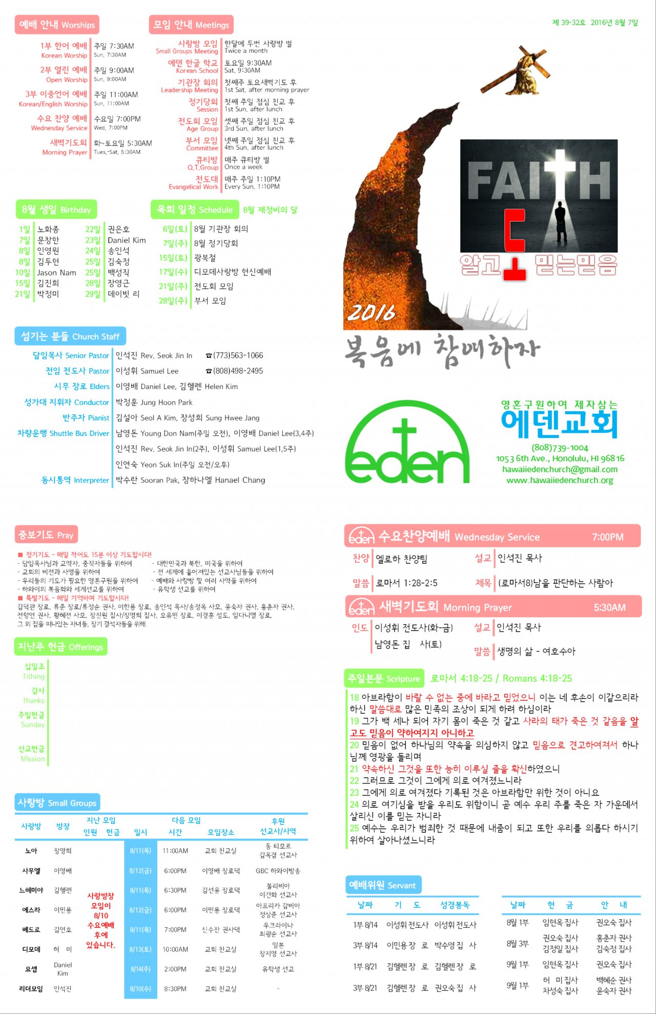 2016/08/07 하와이한인장로교회 에덴교회 주보
