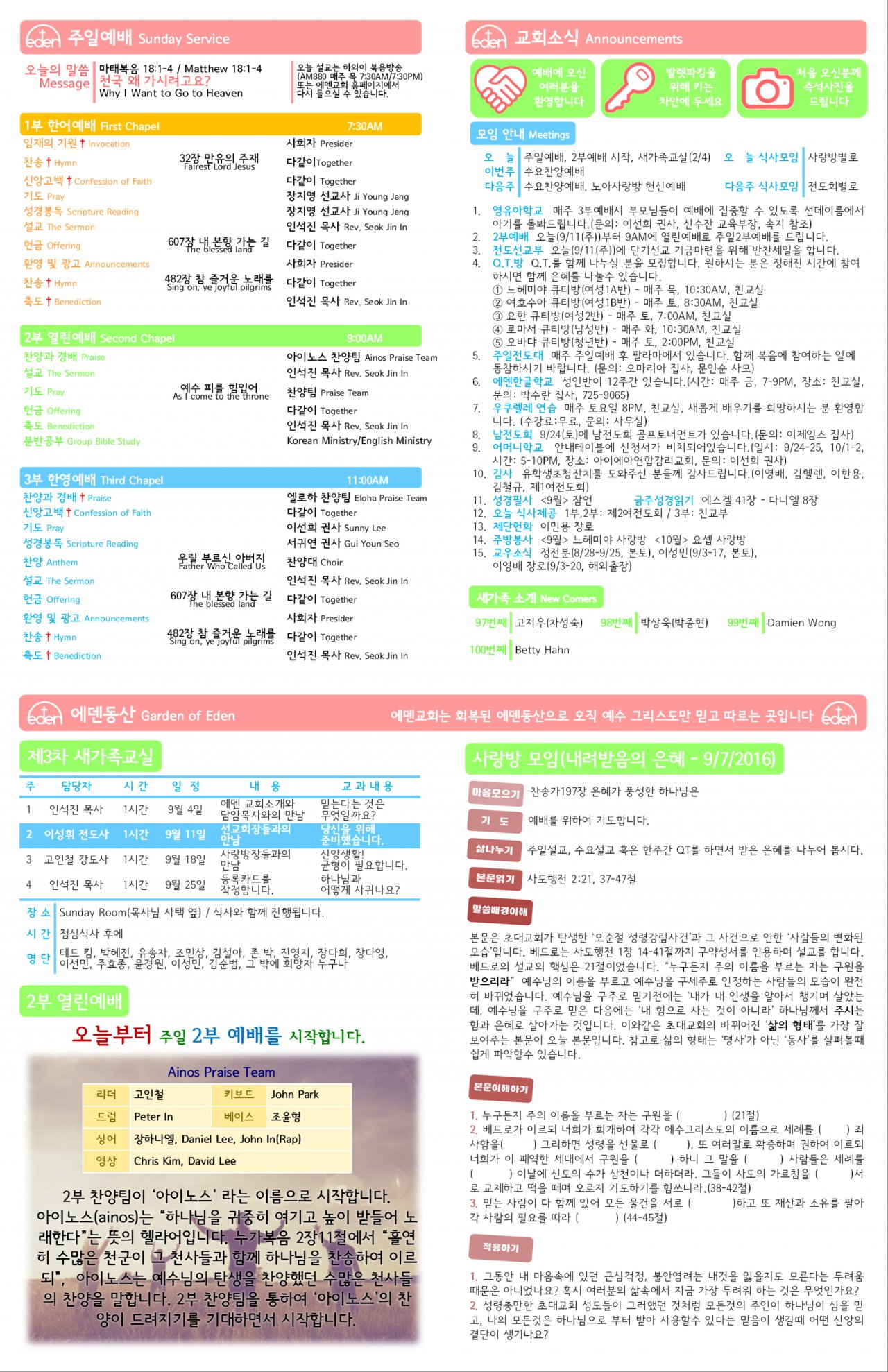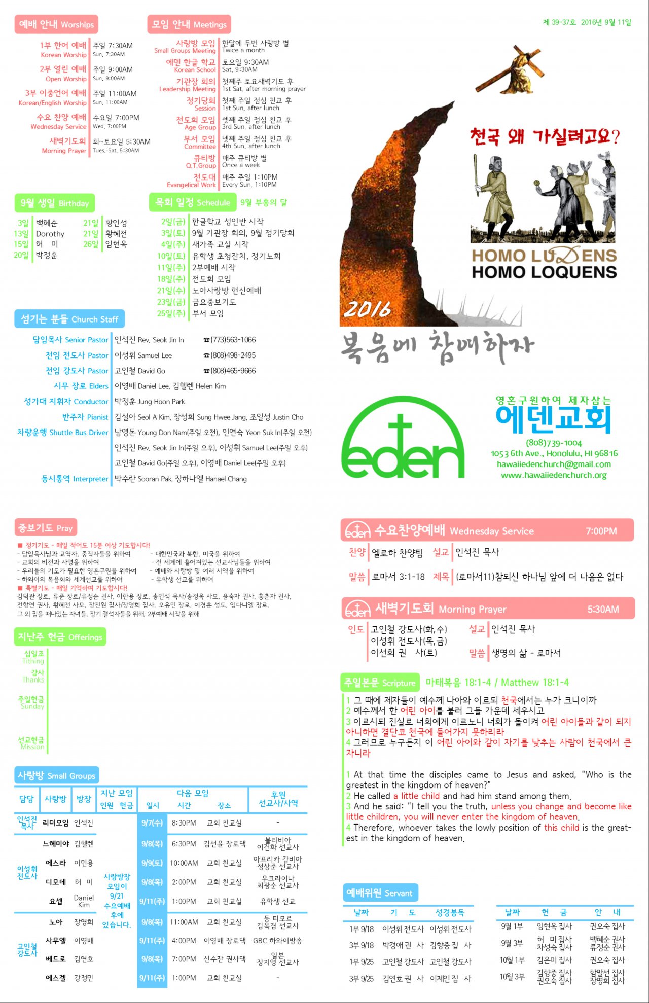 2016/09/11 하와이한인장로교회 에덴교회 주보