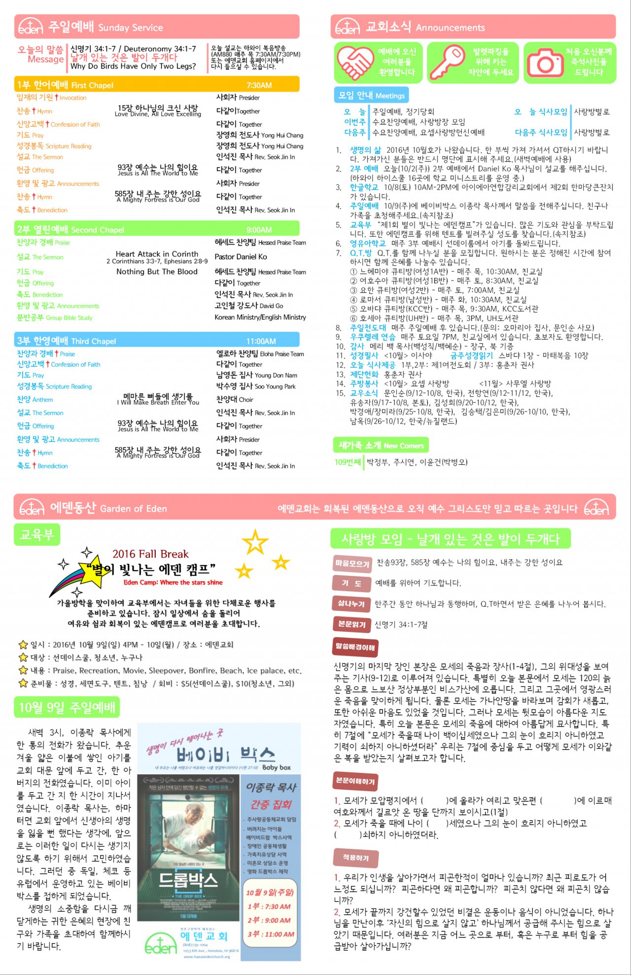 2016/10/02 하와이한인장로교회 에덴교회 주보