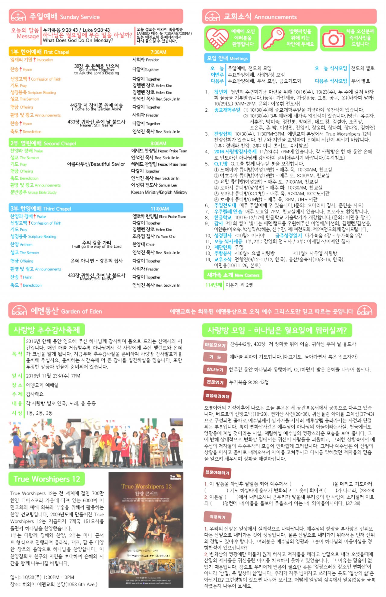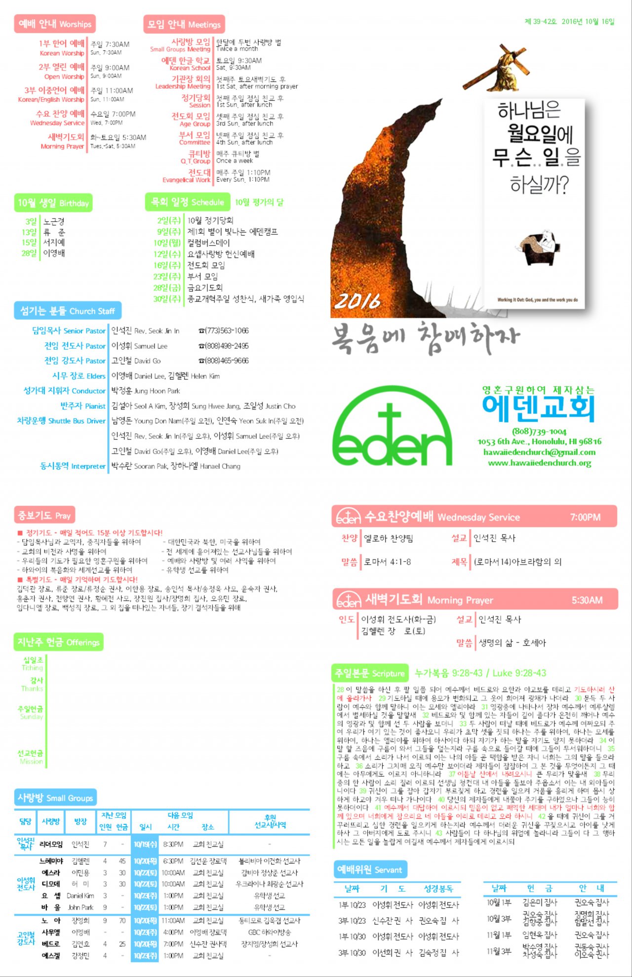 2016/10/16 하와이한인장로교회 에덴교회 주보
