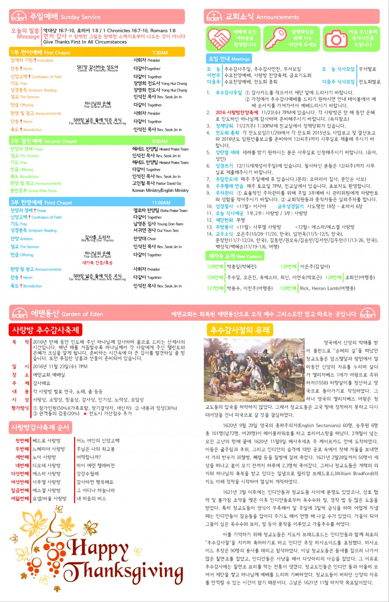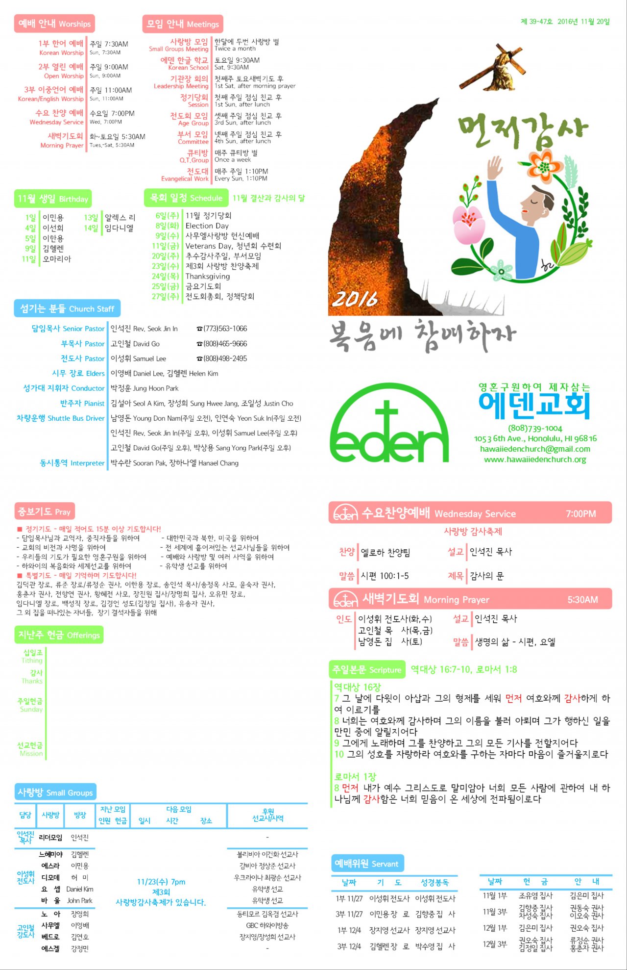 2016/11/20 하와이한인장로교회 에덴교회 주보