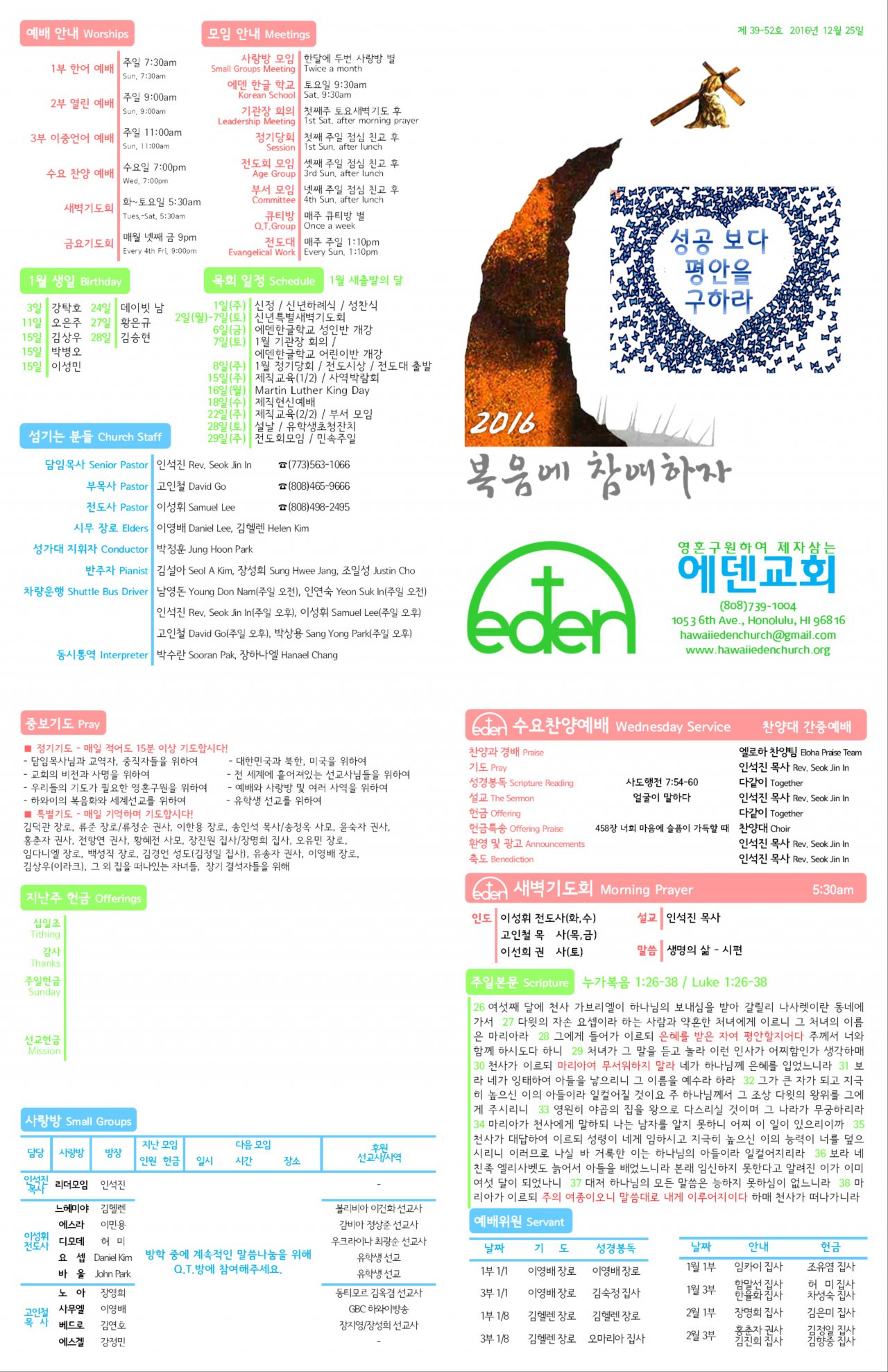2016/12/25 하와이한인장로교회 에덴교회 주보