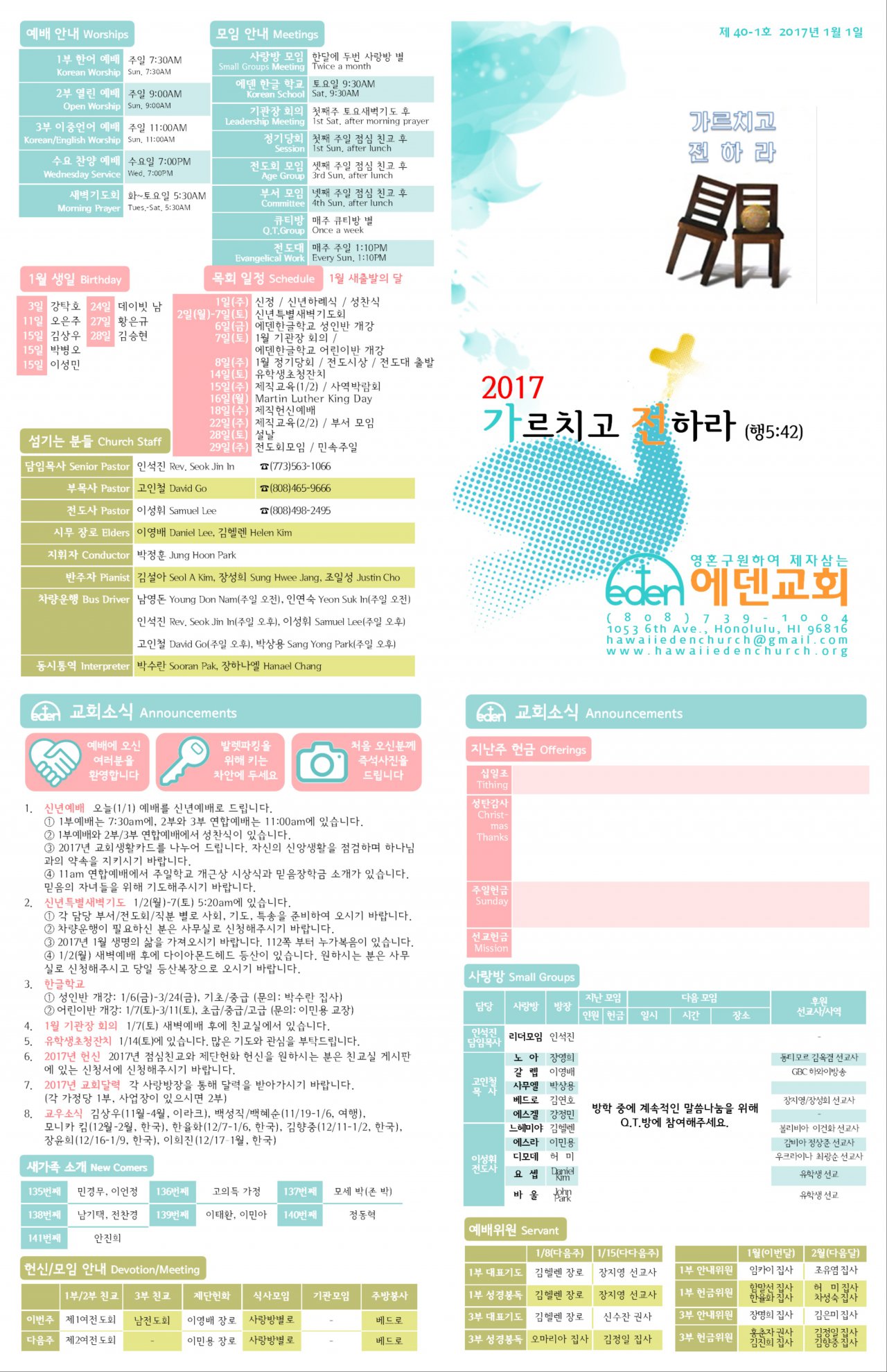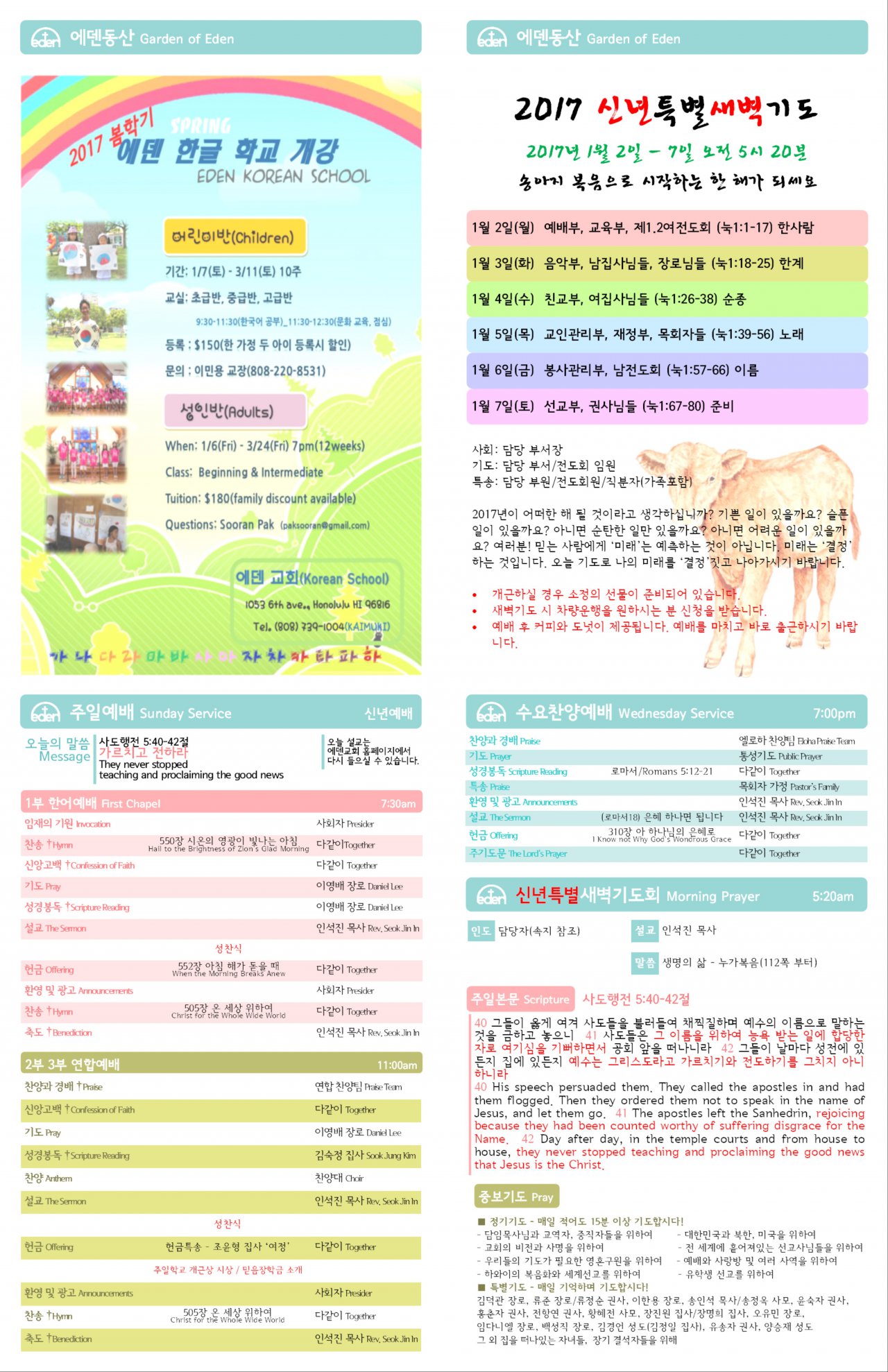 2017/01/01 하와이한인장로교회 에덴교회 주보