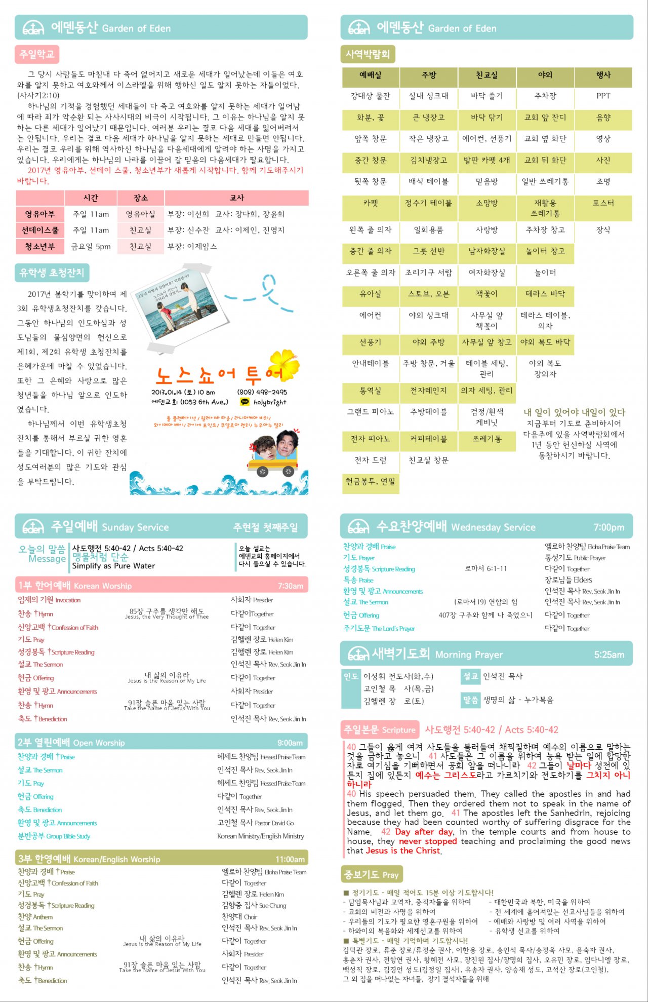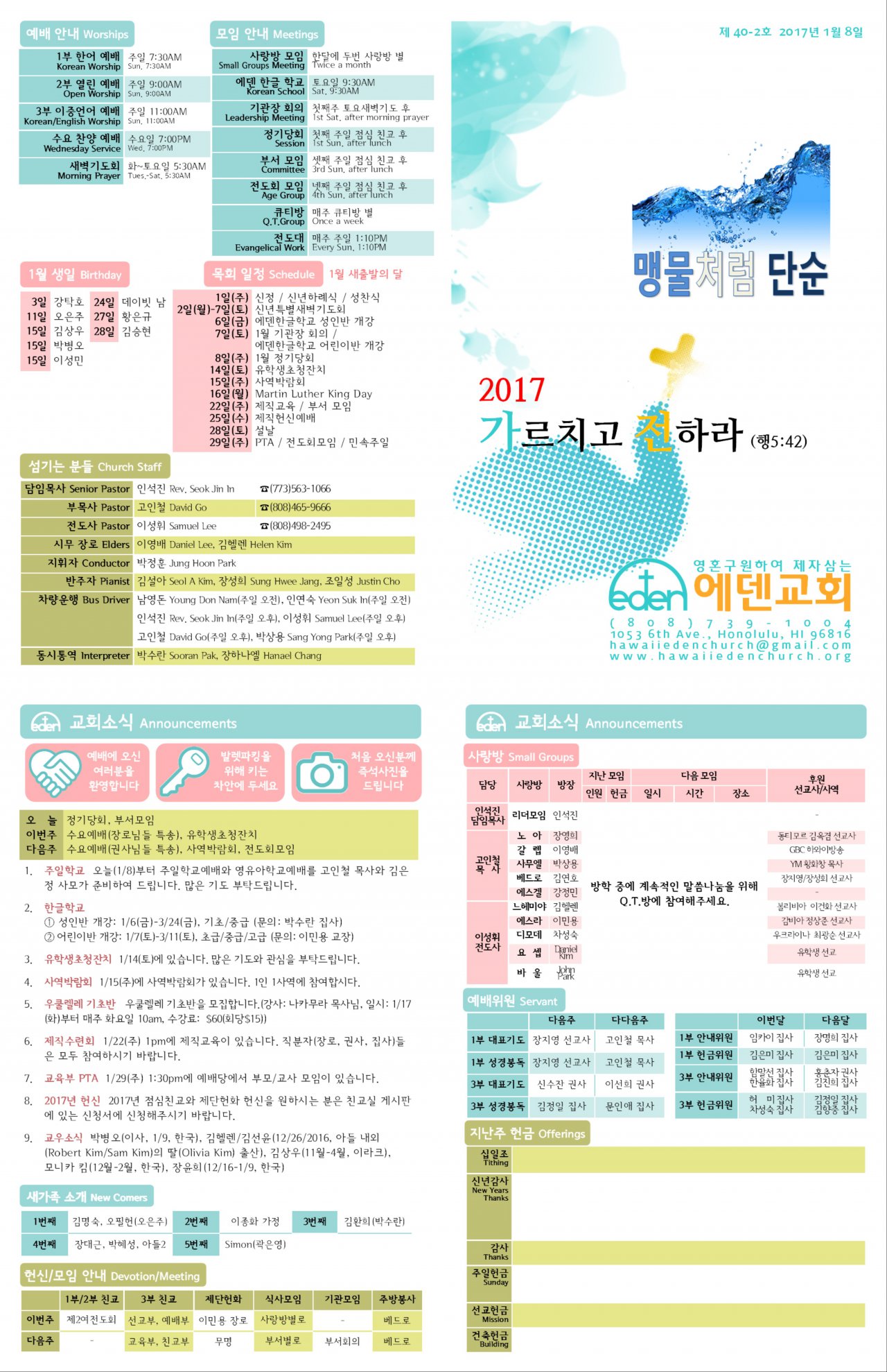 2017/01/08 하와이한인장로교회 에덴교회 주보