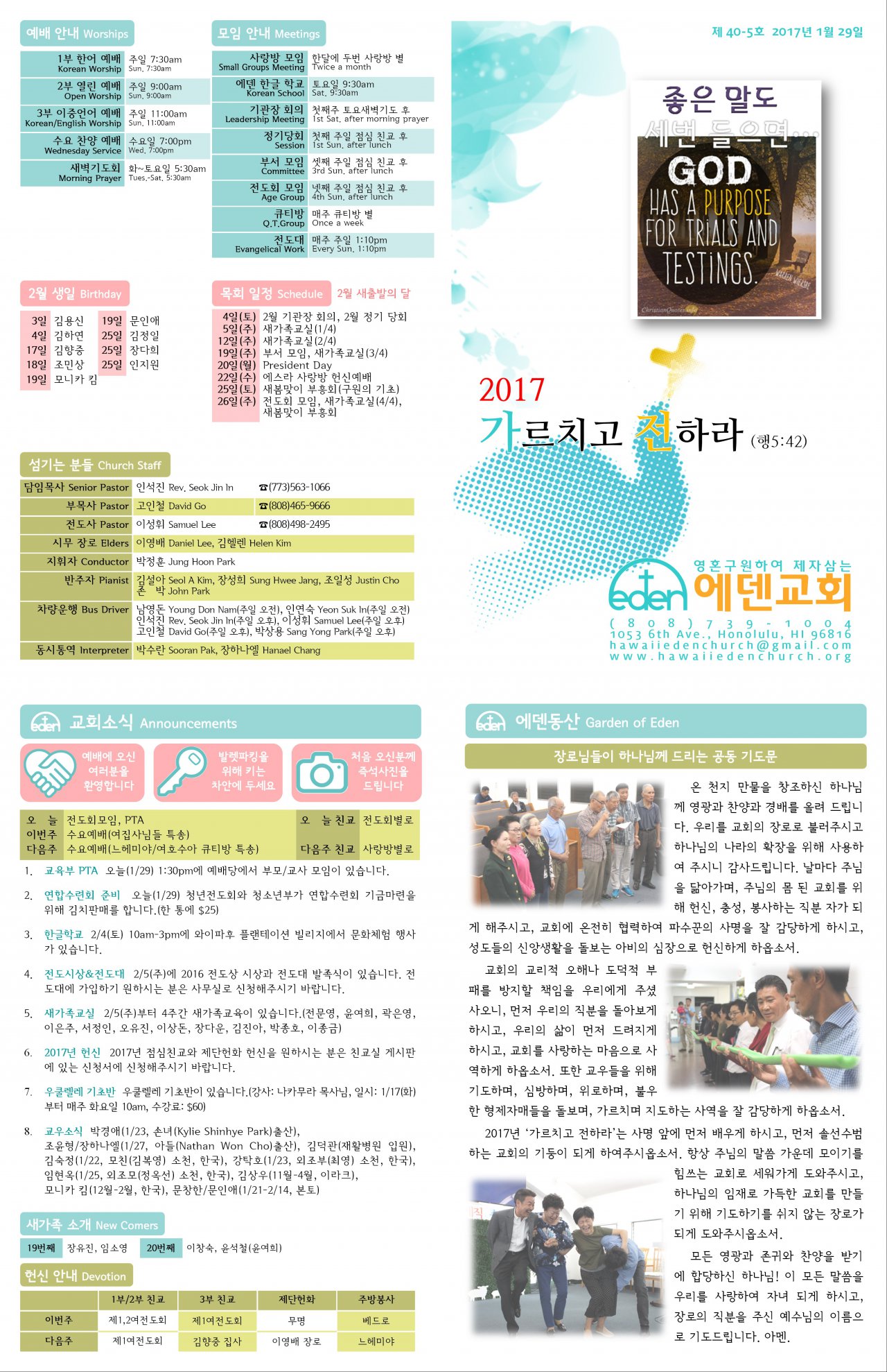 2017/01/29 하와이한인장로교회 에덴교회 주보