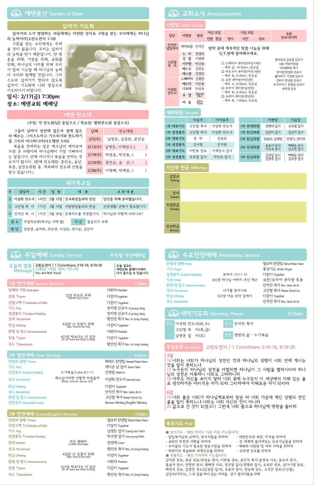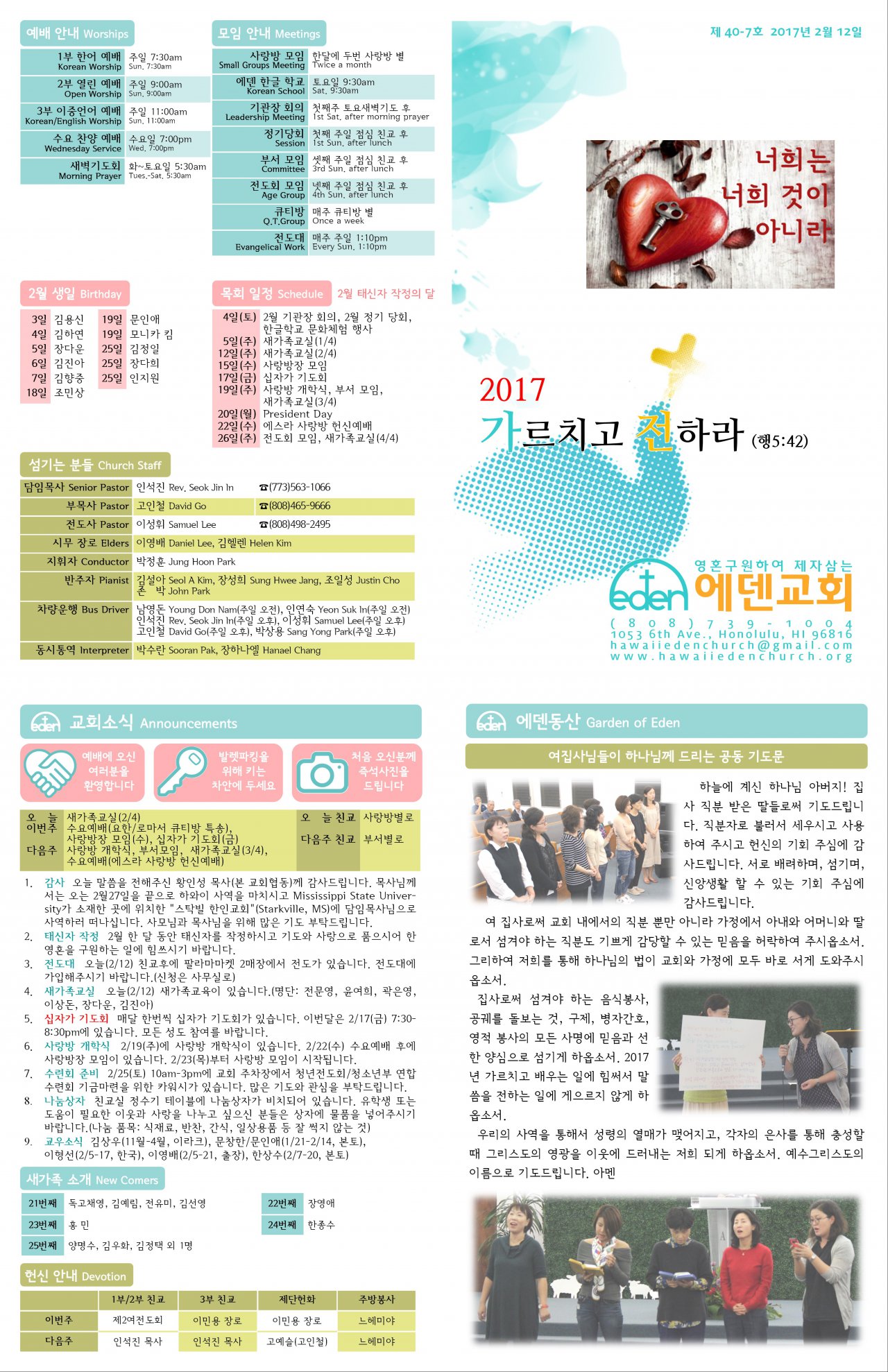 2017/02/12 하와이한인장로교회 에덴교회 주보