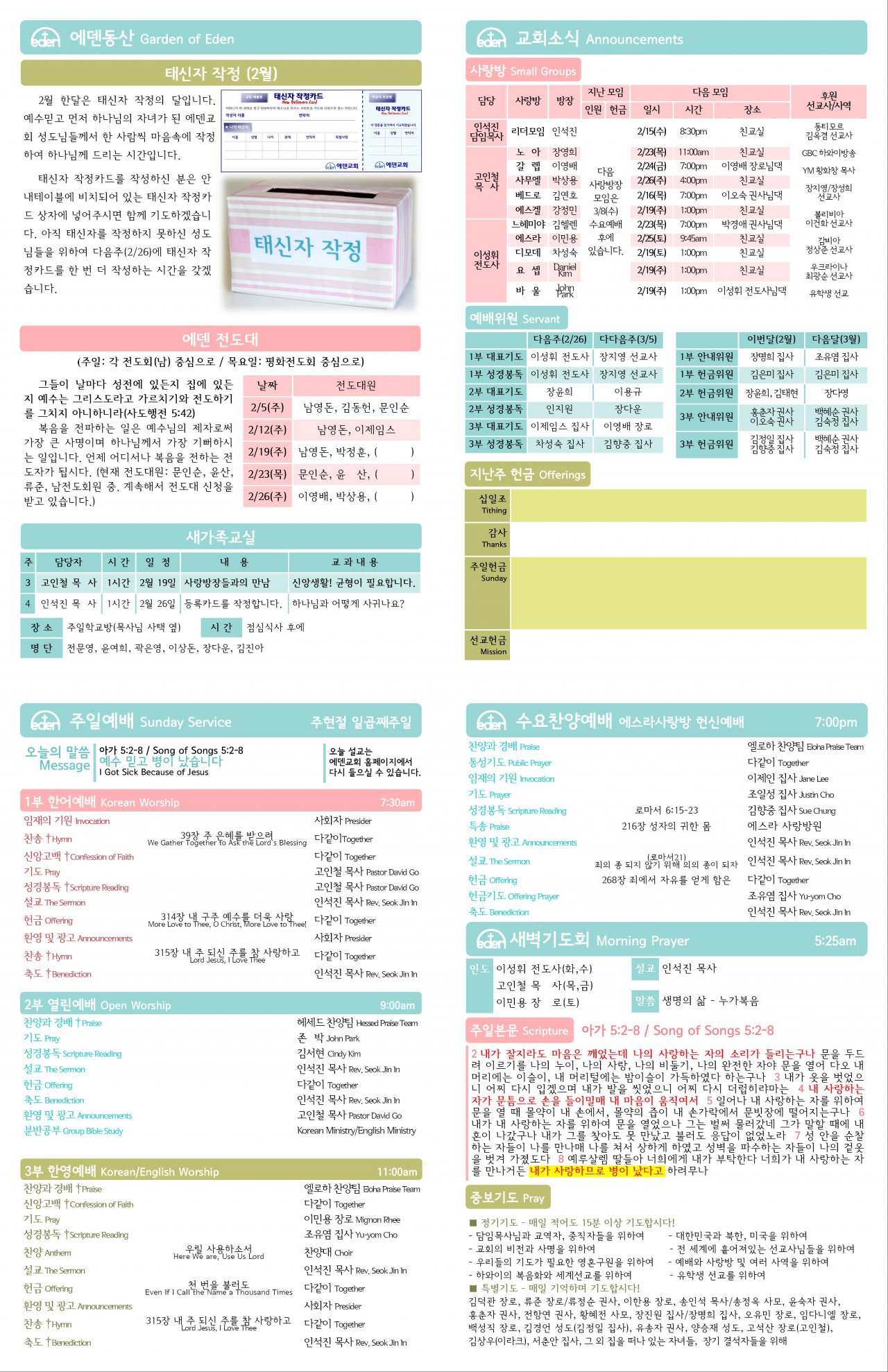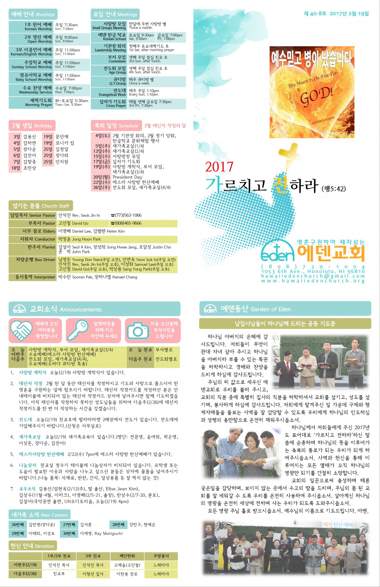 2017/02/19 하와이한인장로교회 에덴교회 주보