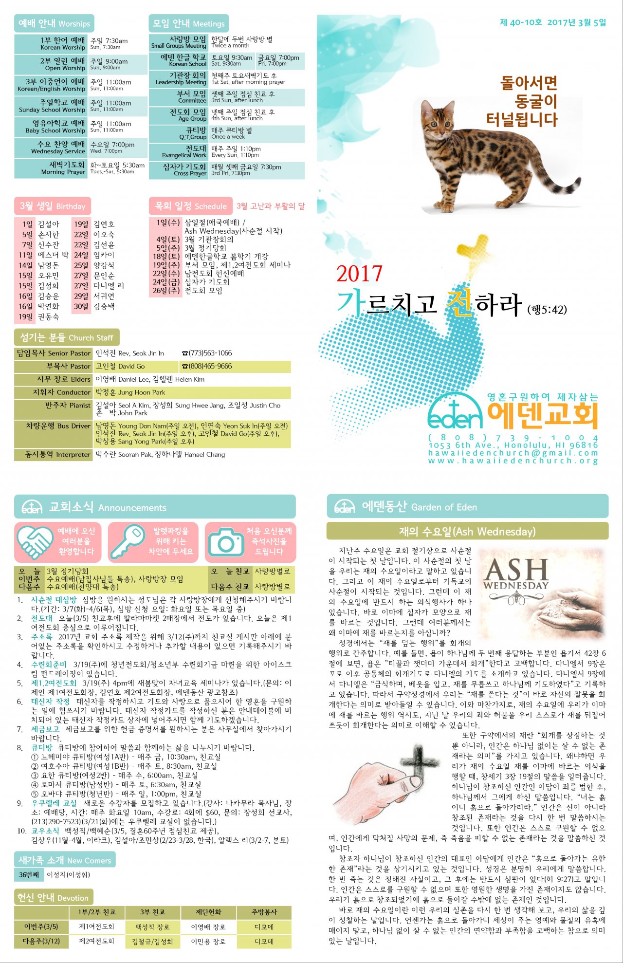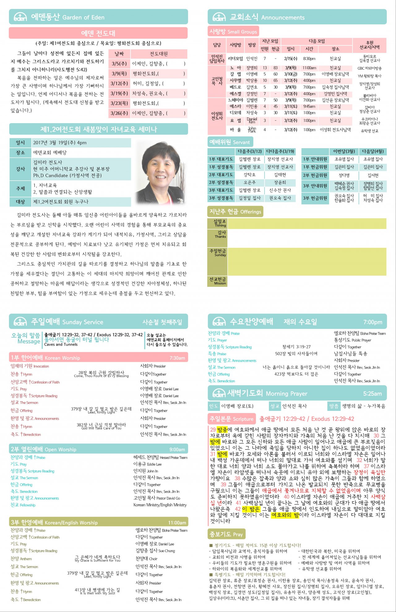 2017/03/05 하와이한인장로교회 에덴교회 주보
