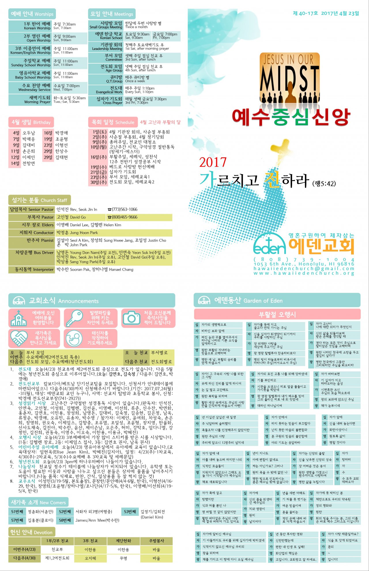 2017/04/23 하와이한인장로교회 에덴교회 주보
