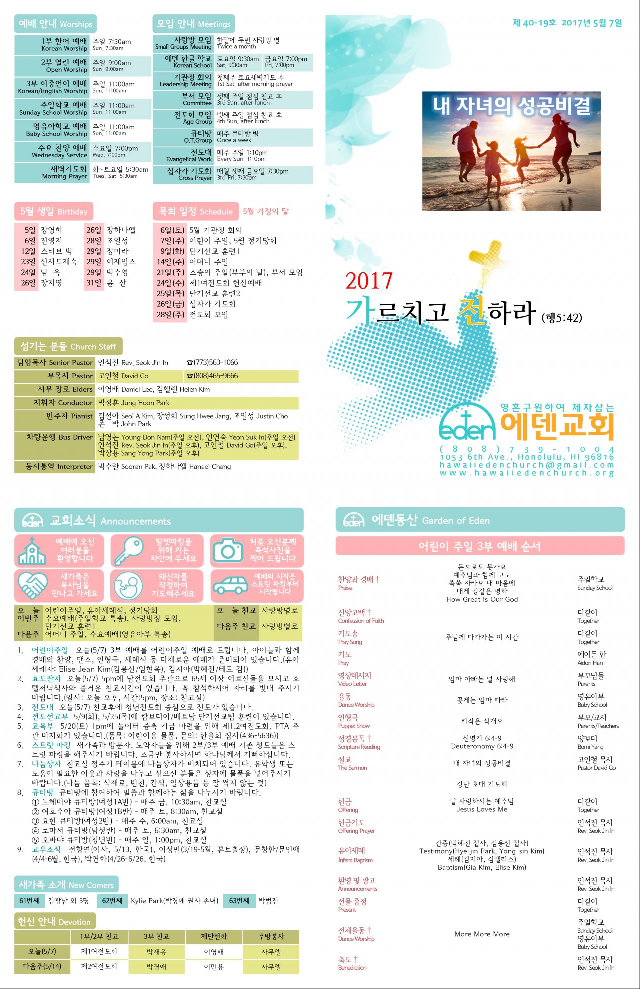 2017/05/07 하와이한인장로교회 에덴교회 주보