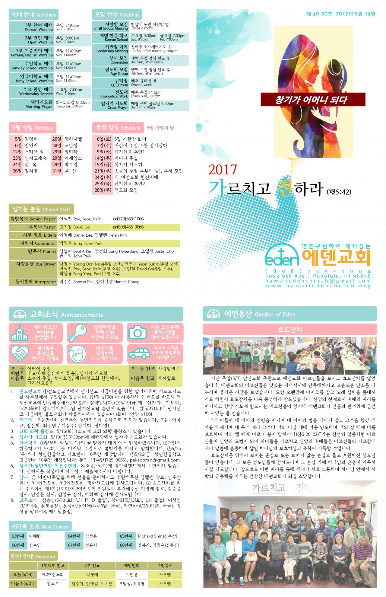 2017/05/14 하와이한인장로교회 에덴교회 주보
