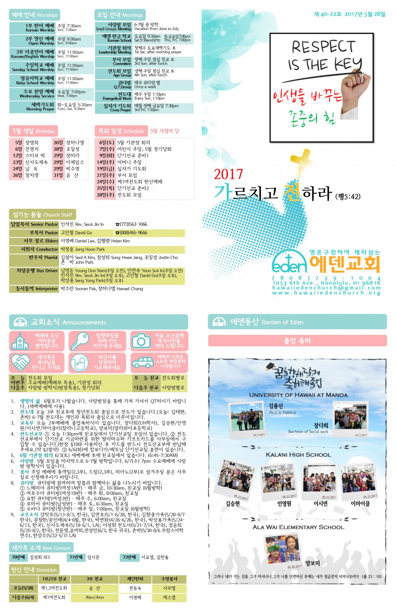 2017/05/28 하와이한인장로교회 에덴교회 주보