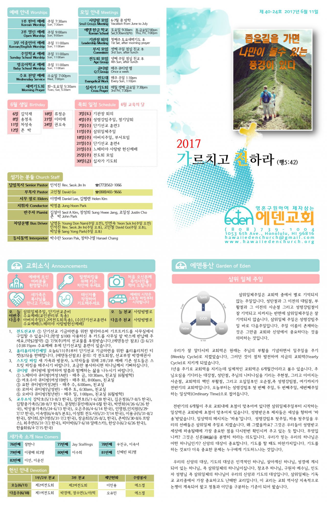 2017/06/11 하와이한인장로교회 에덴교회 주보