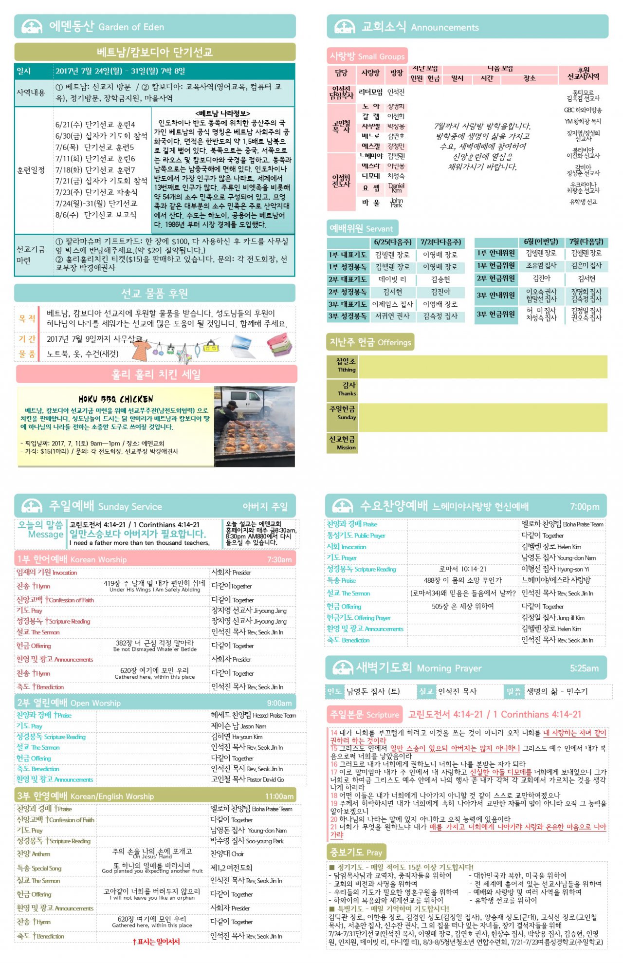 2017/06/18 하와이한인장로교회 에덴교회 주보