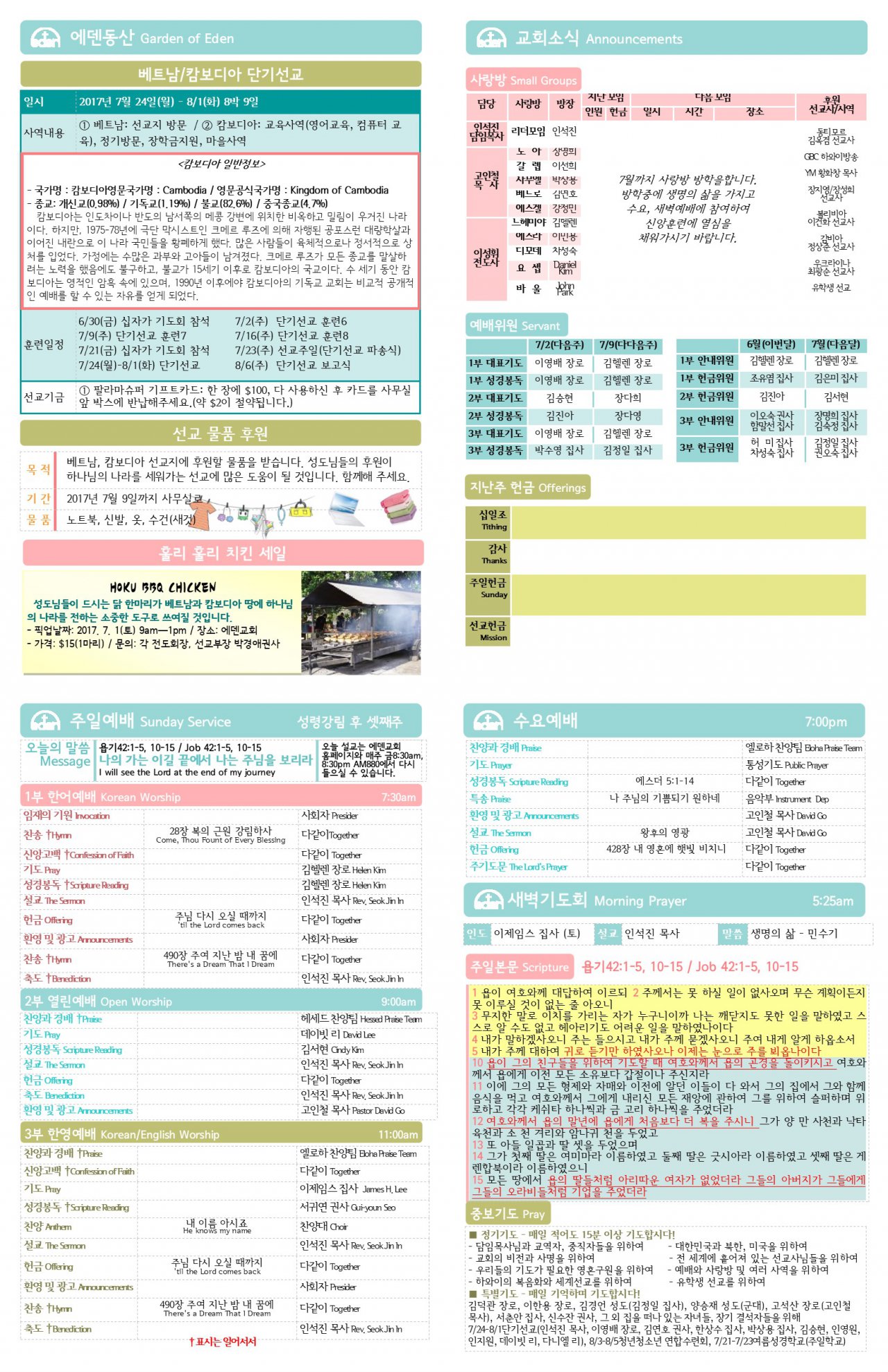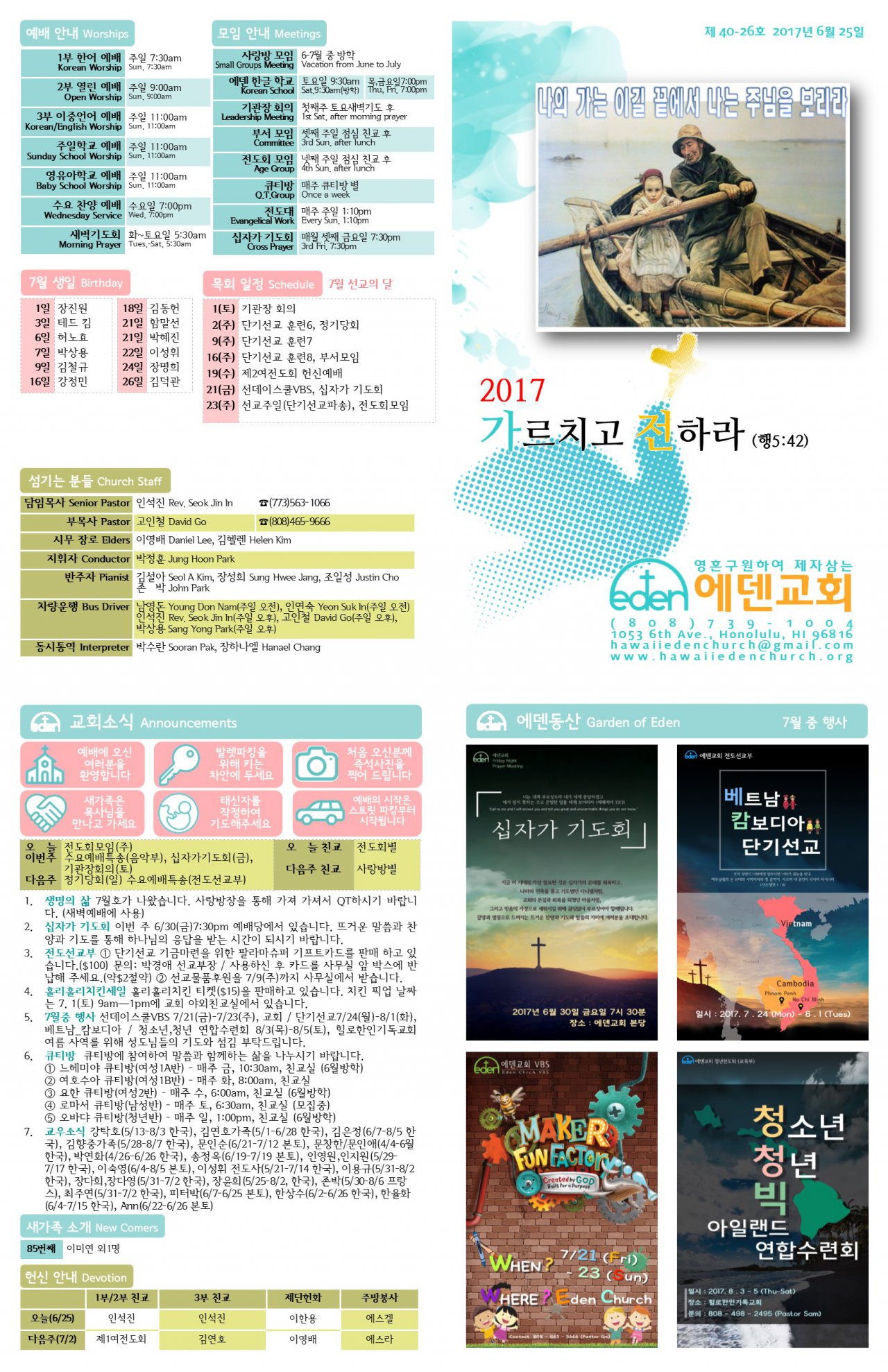 2017/06/25 하와이한인장로교회 에덴교회 주보