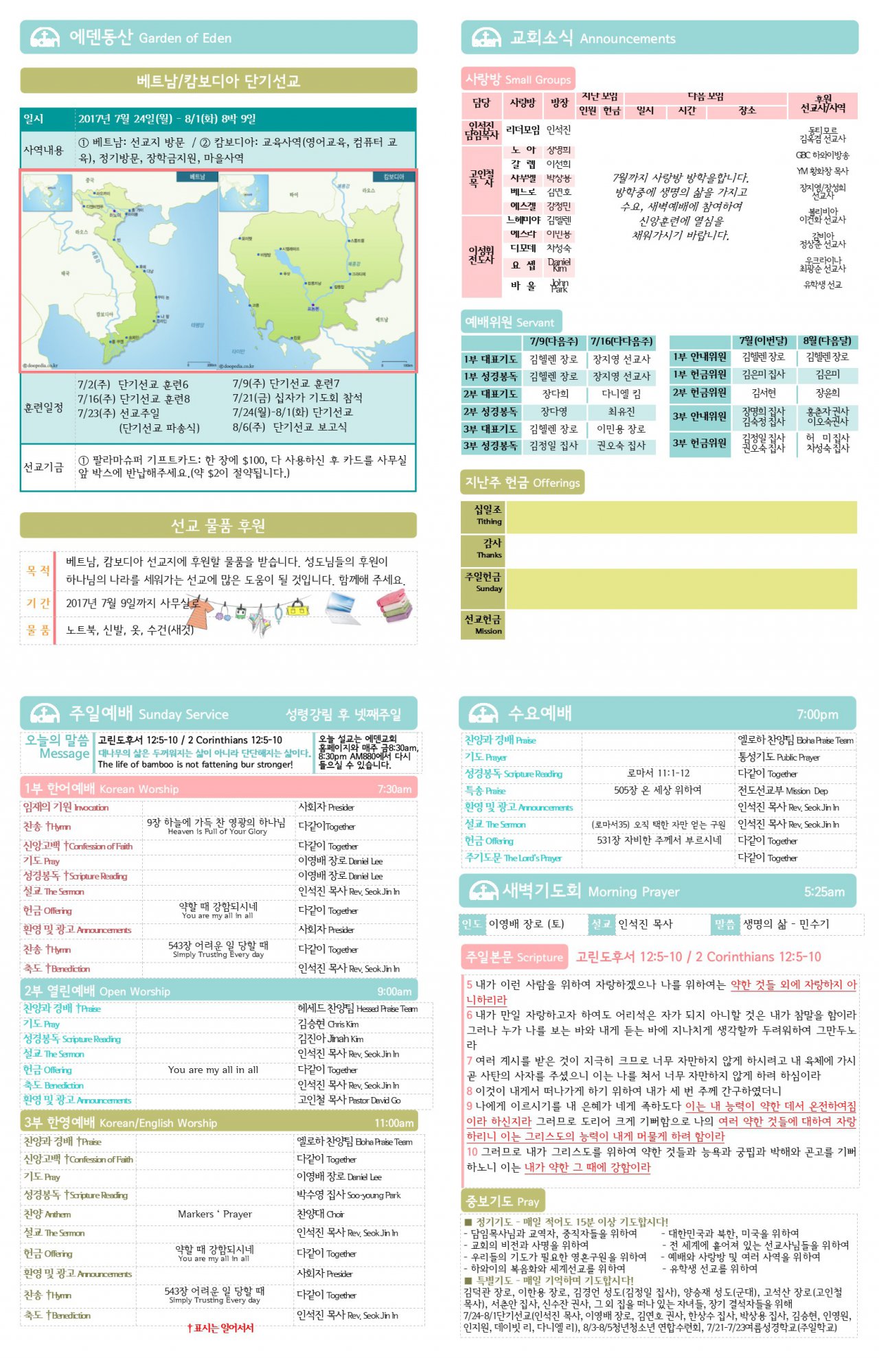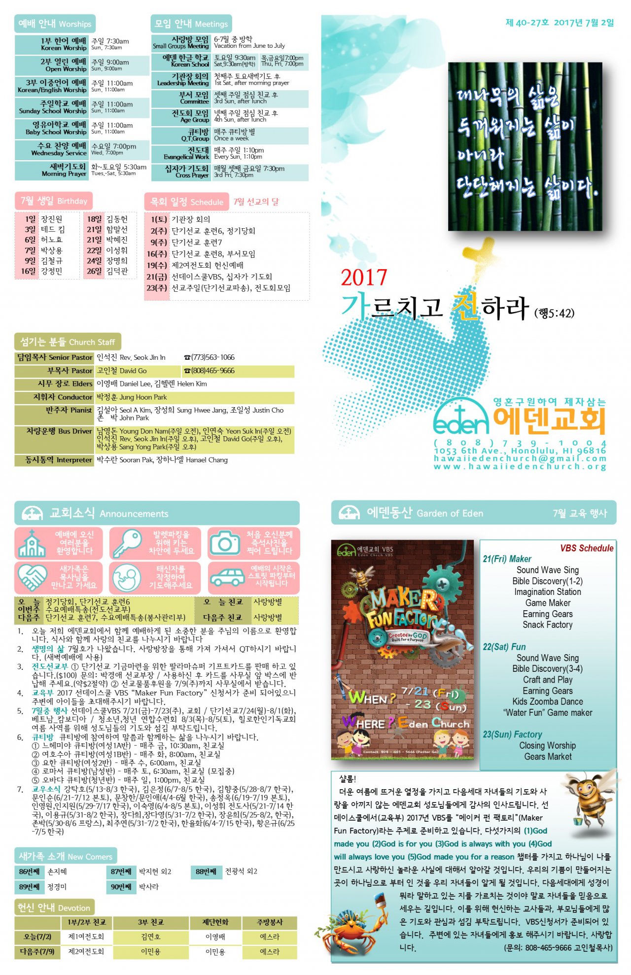 2017/07/02 하와이한인장로교회 에덴교회 주보