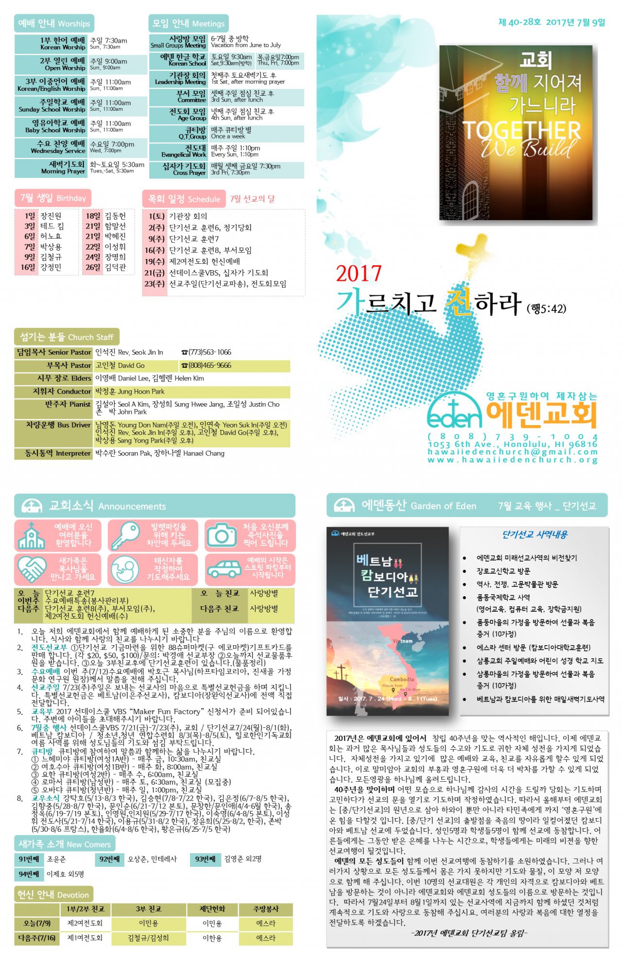 2017/07/09 하와이한인장로교회 에덴교회 주보