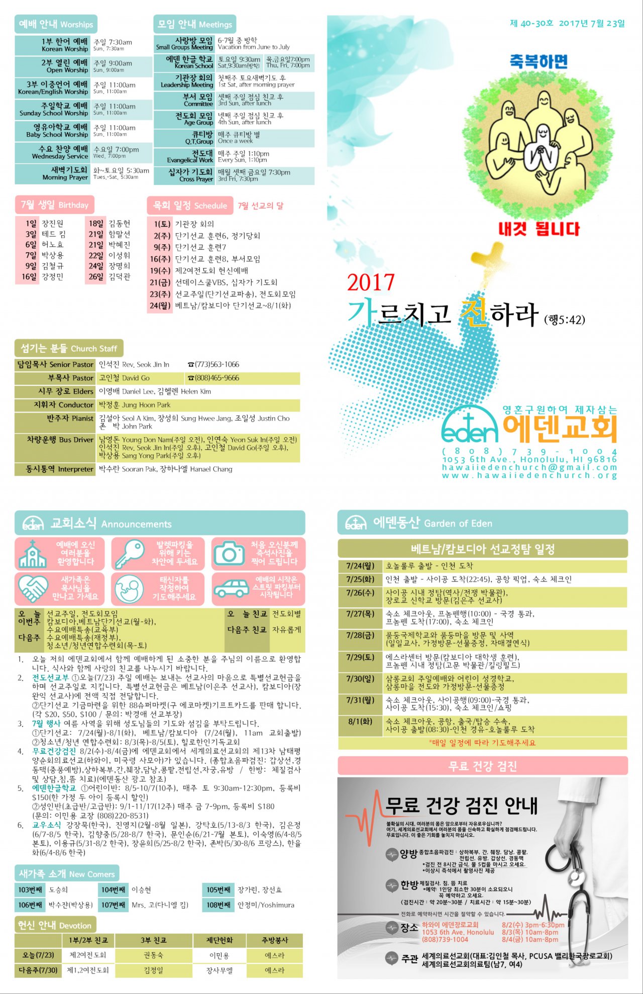2017/07/23 하와이한인장로교회 에덴교회 주보