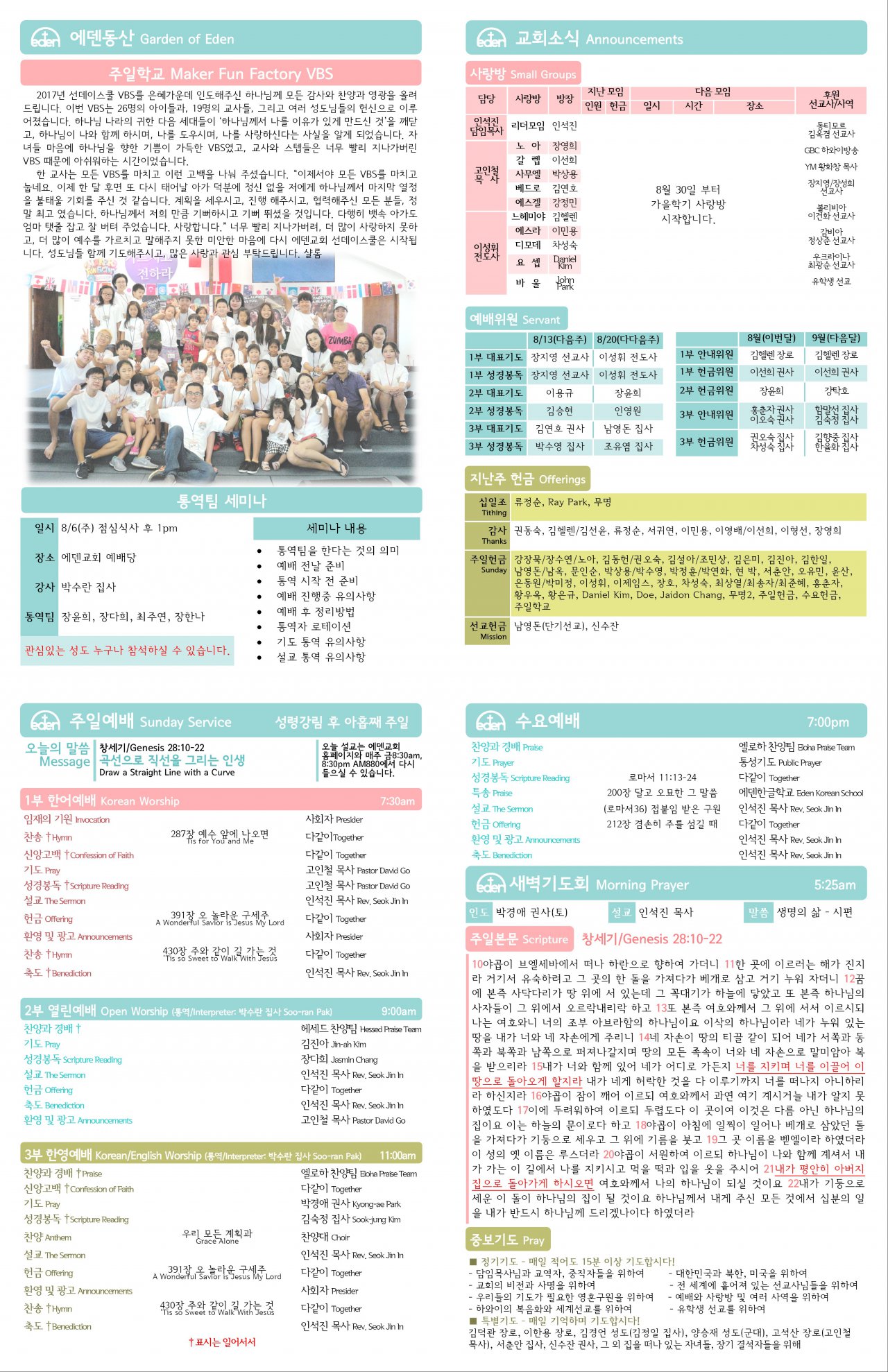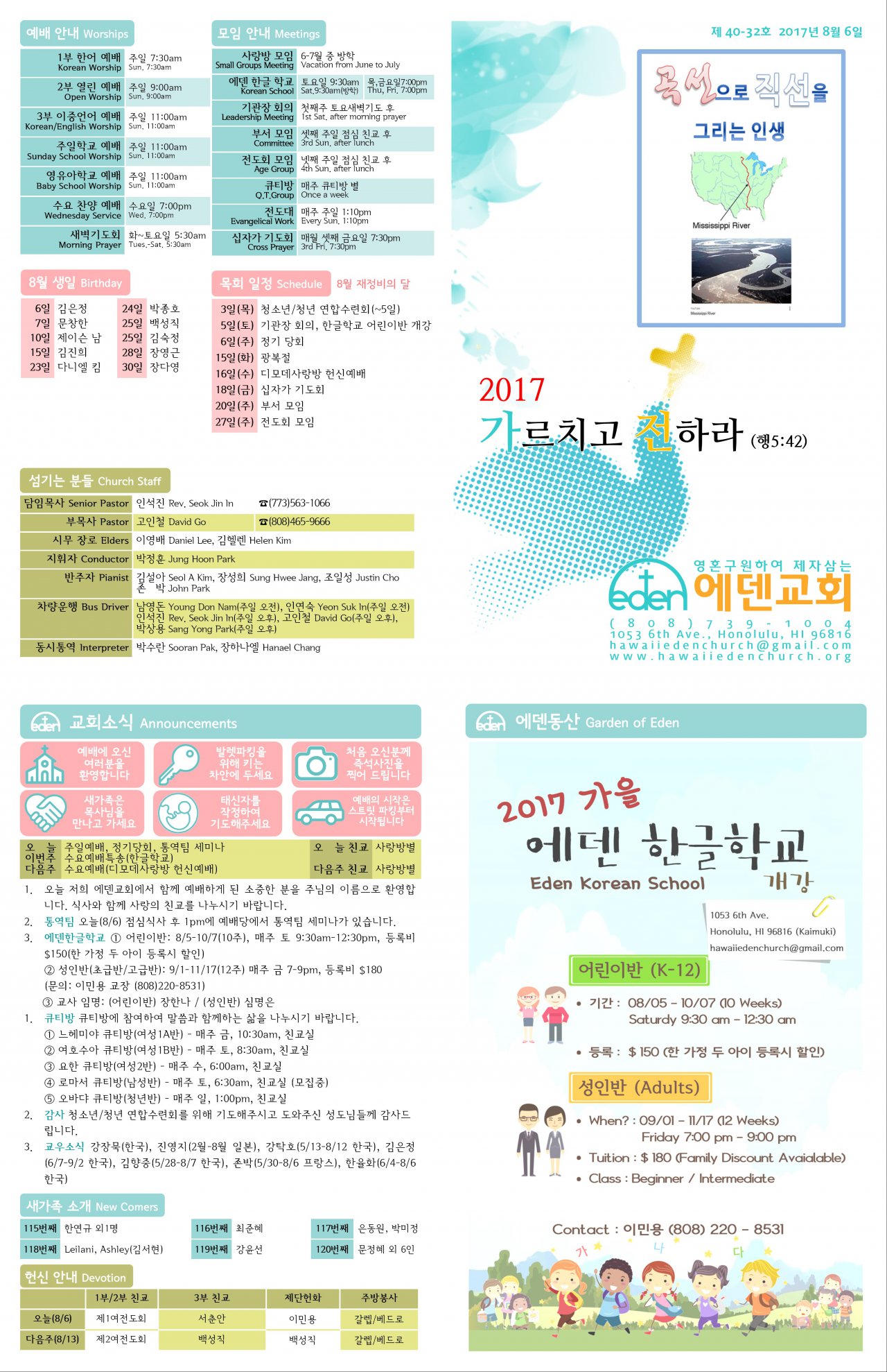 2017/08/06 하와이한인장로교회 에덴교회 주보