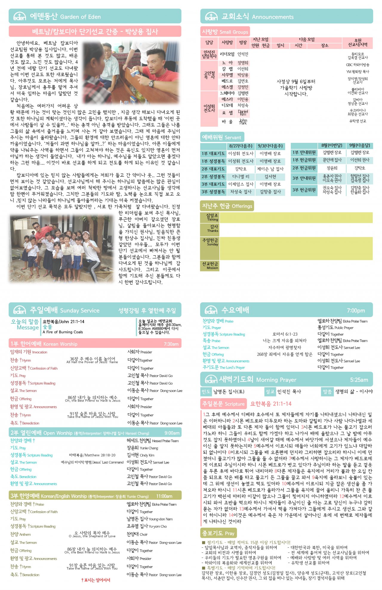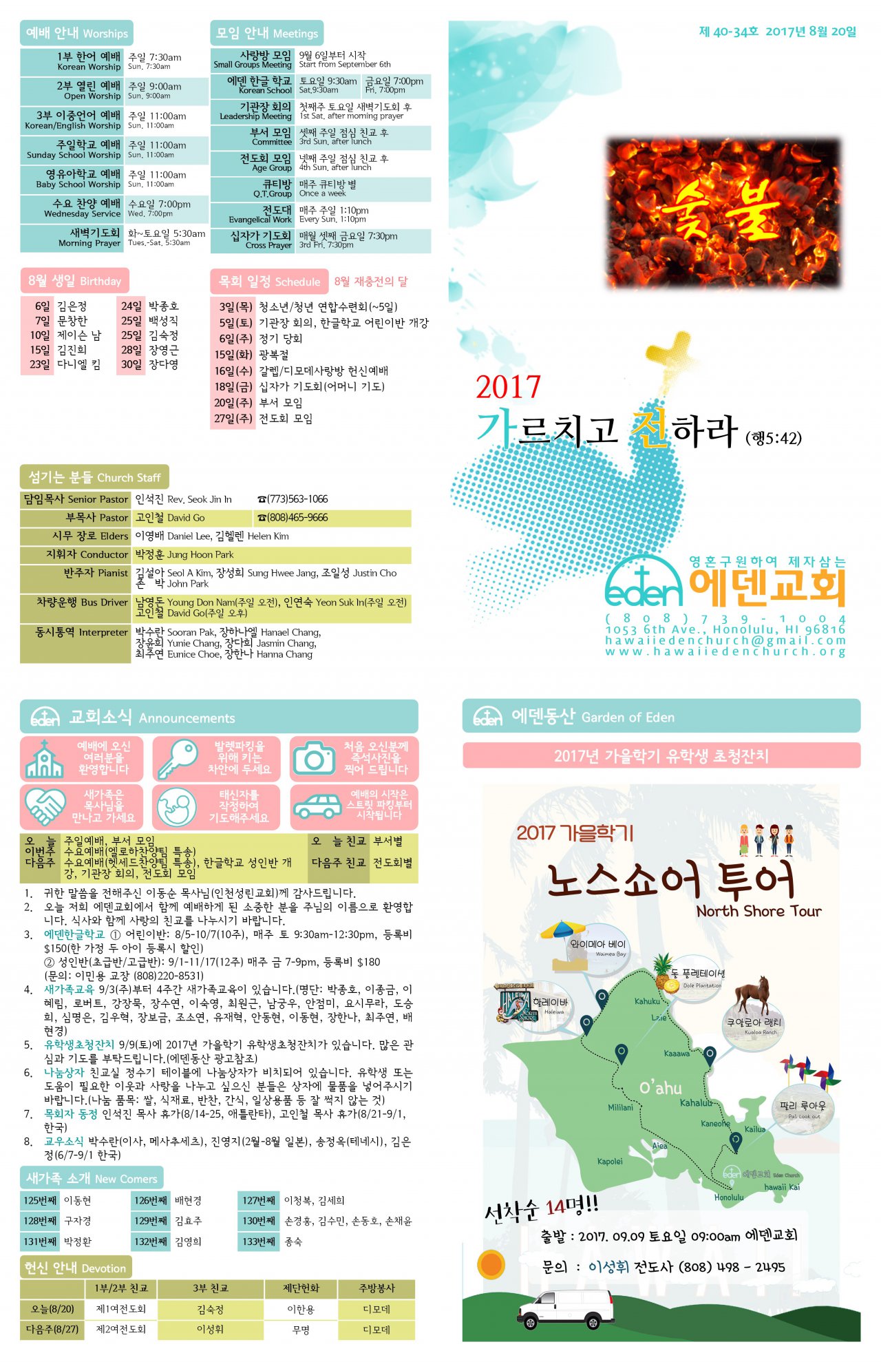 2017/08/20 하와이한인교회 에덴장로교회 주보