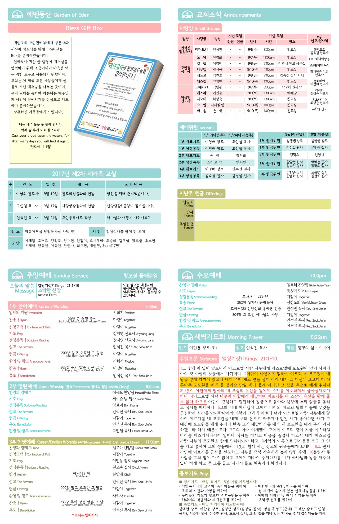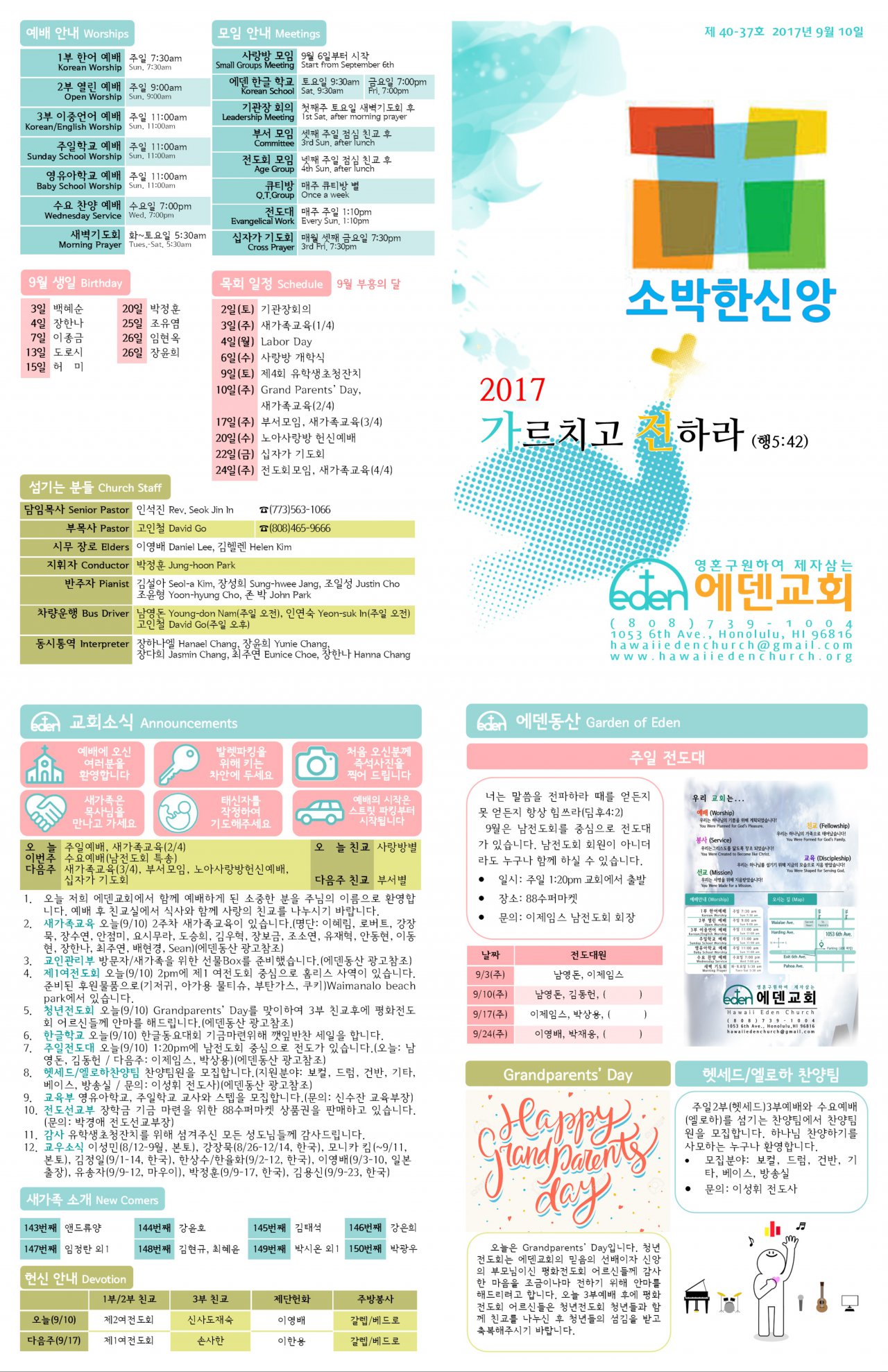 2017/09/10 하와이한인교회 에덴장로교회 주보