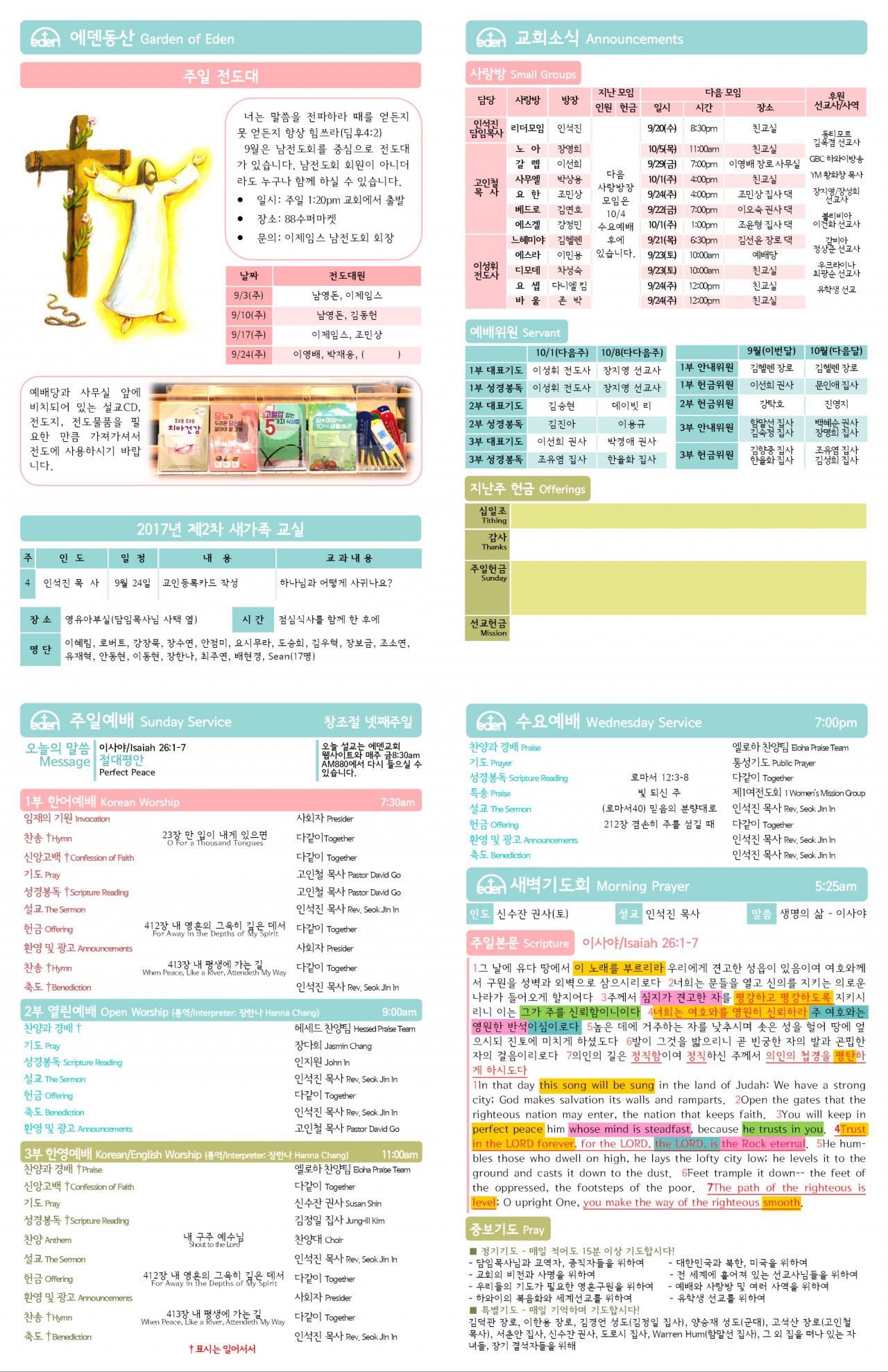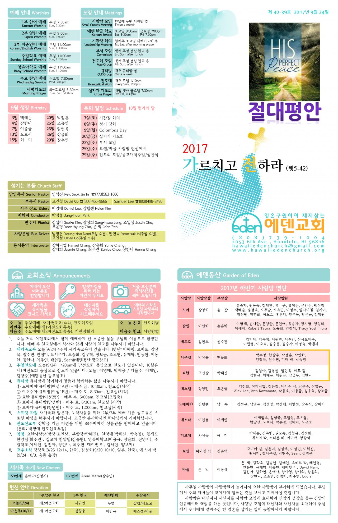 2017/09/24 하와이한인교회 에덴장로교회 주보