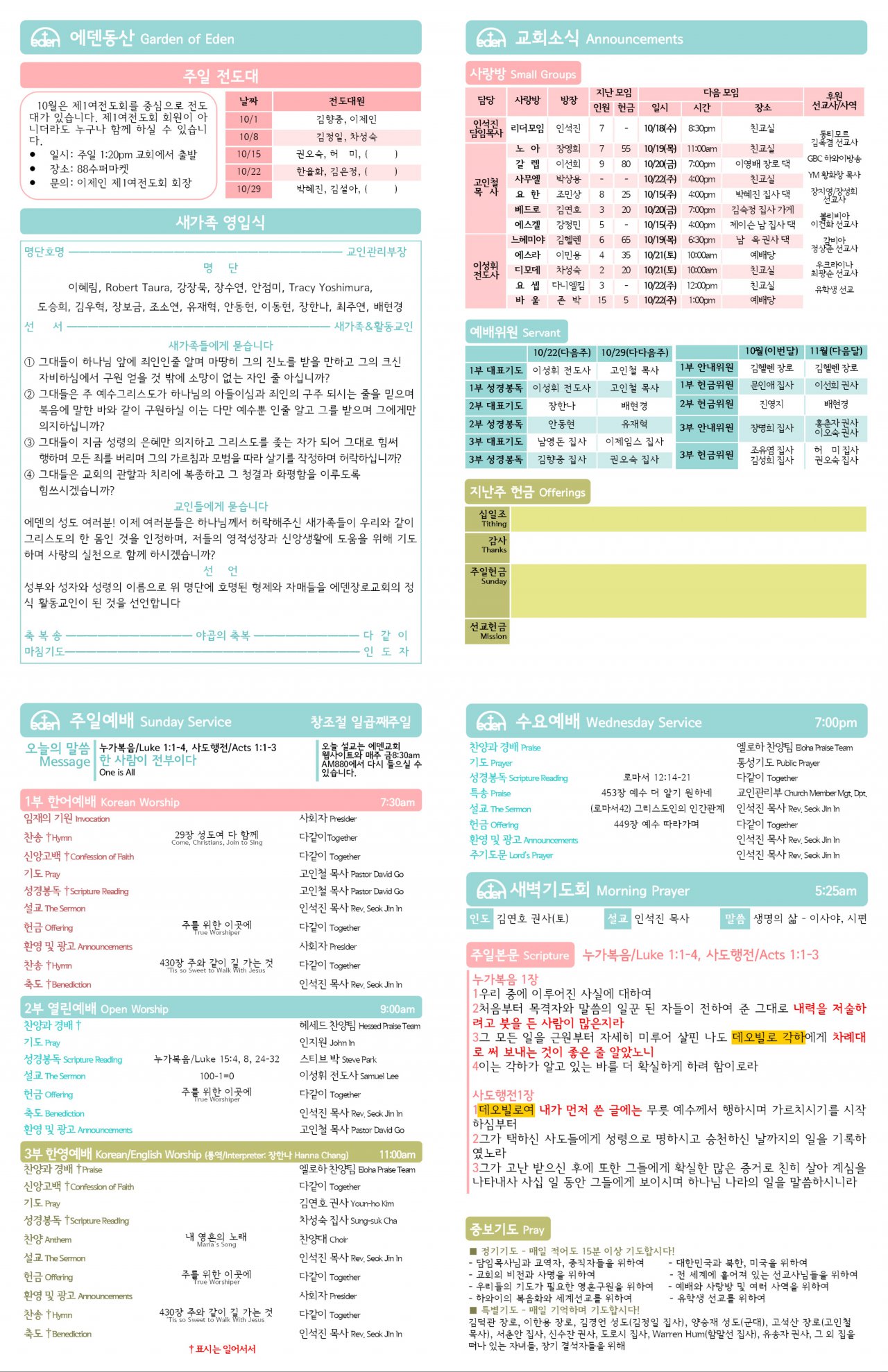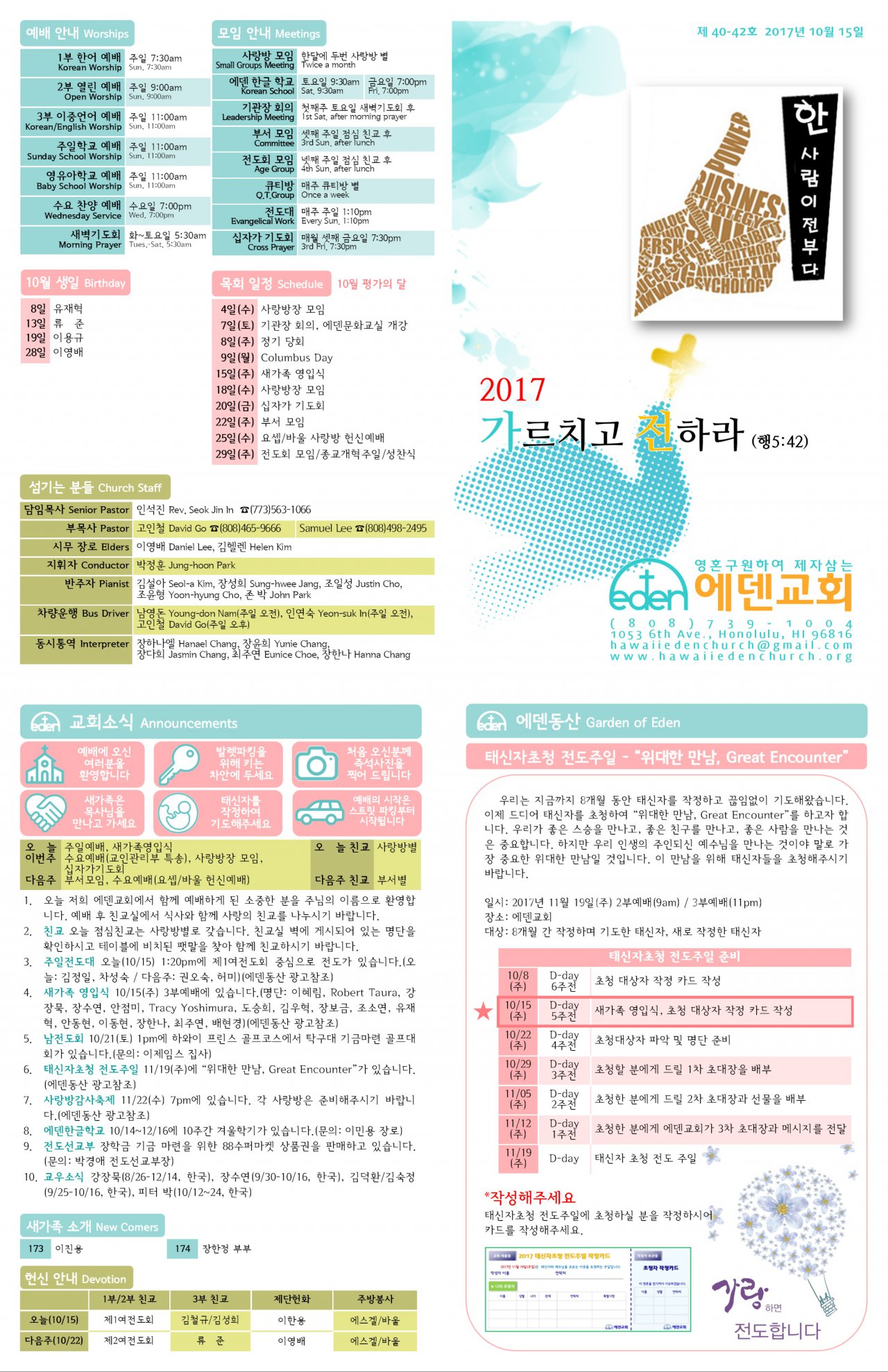 2017/10/15 하와이한인교회 에덴장로교회 주보