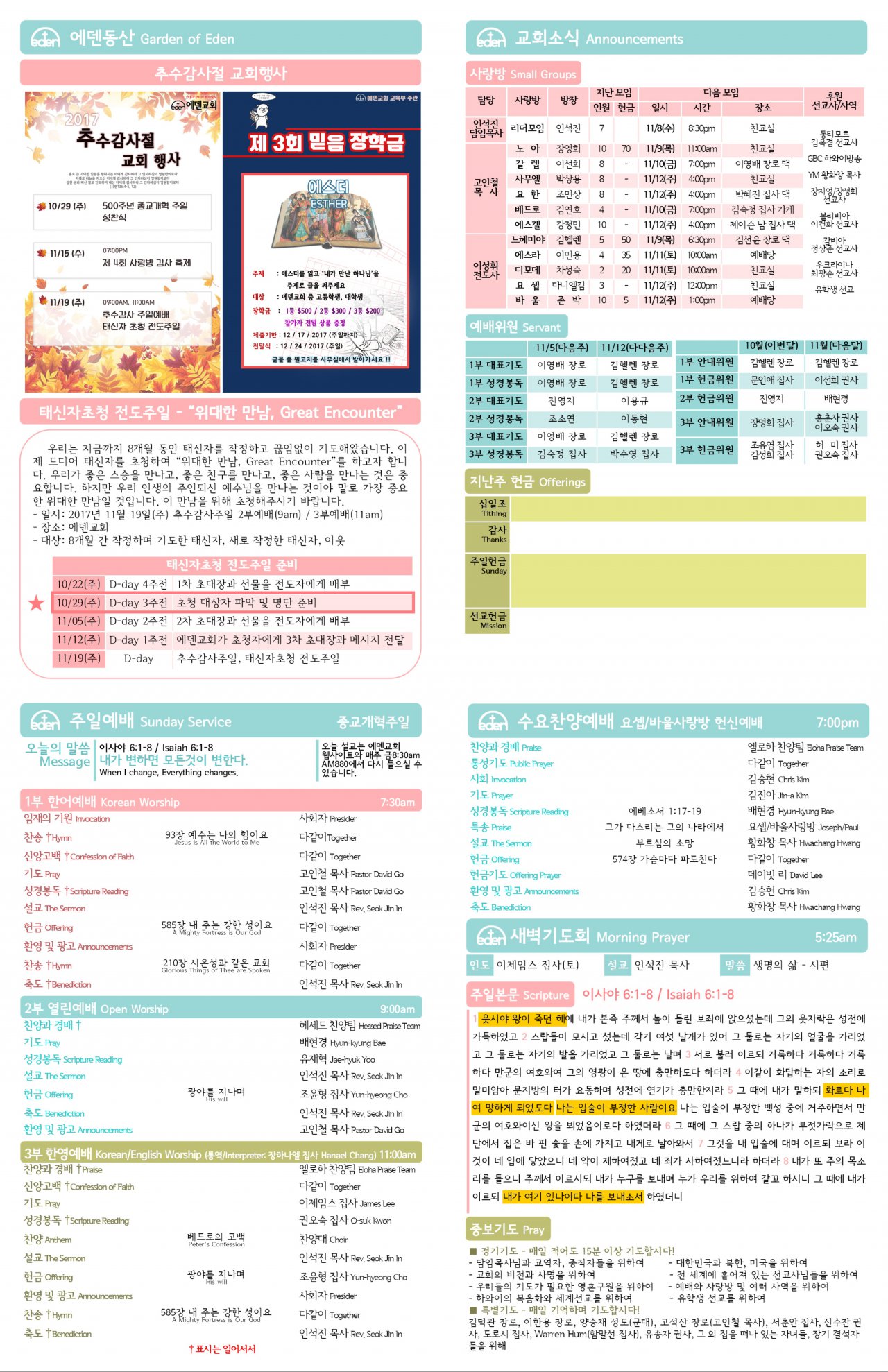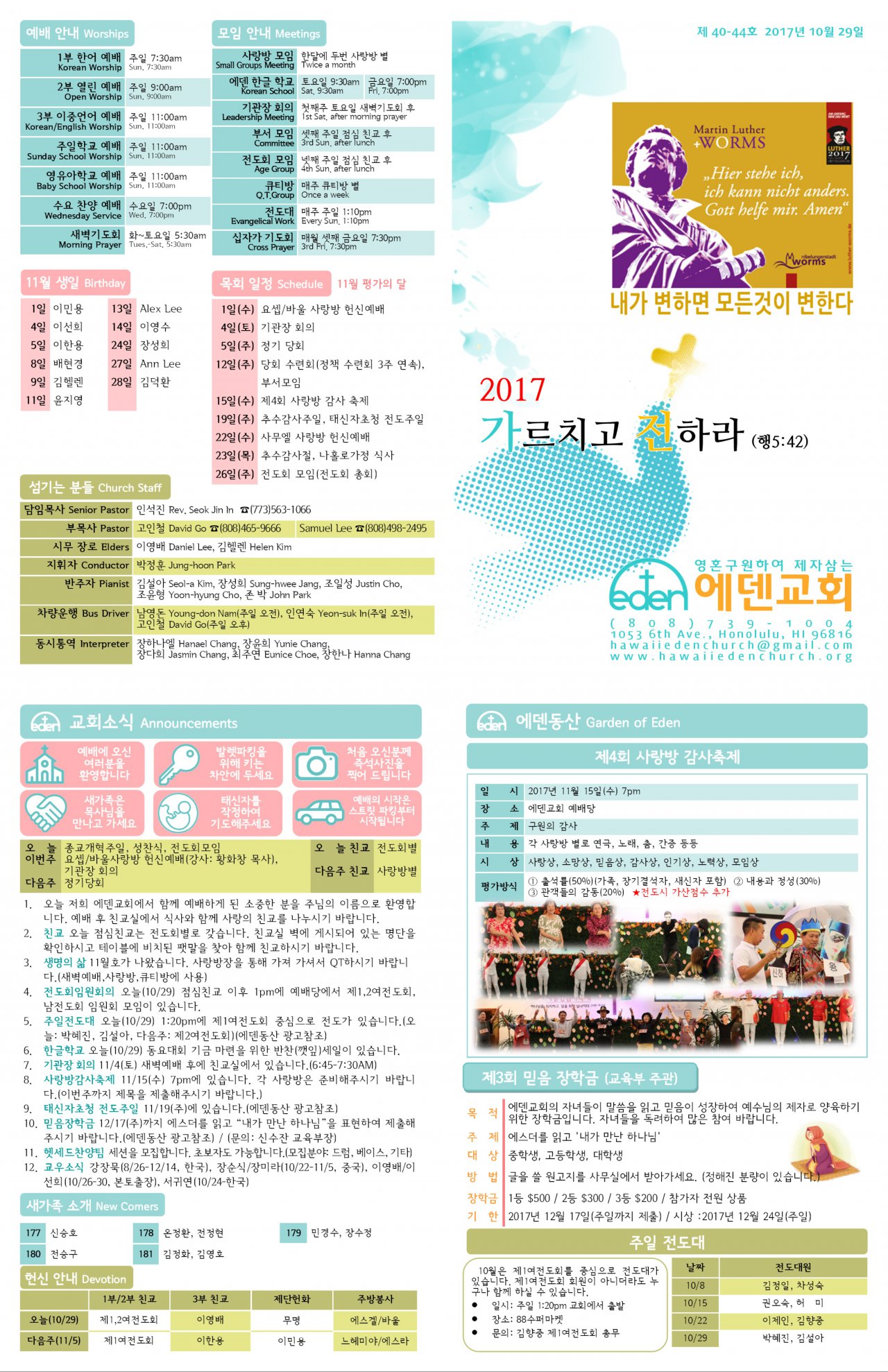 2017/10/29 하와이한인교회 에덴장로교회 주보