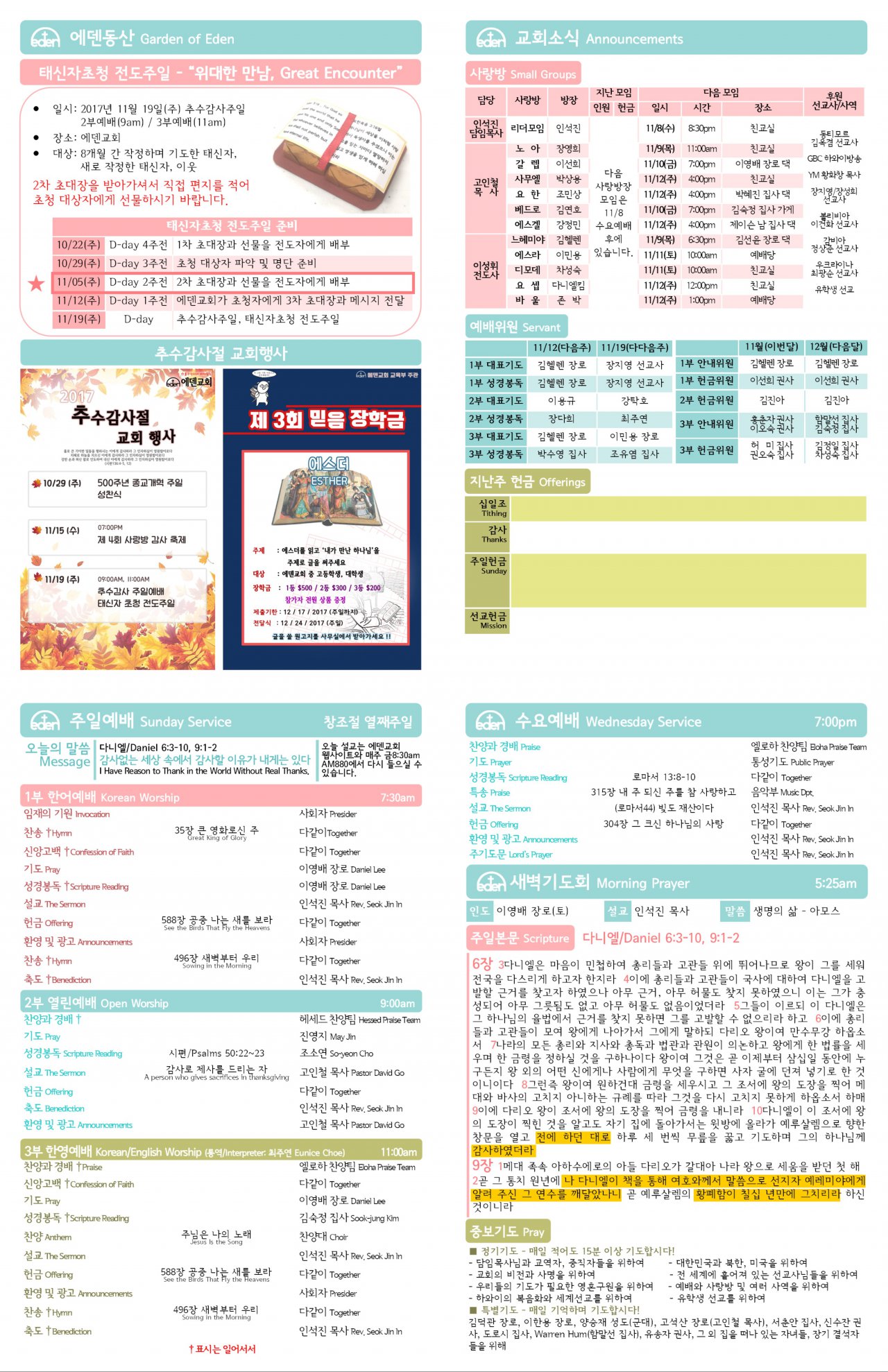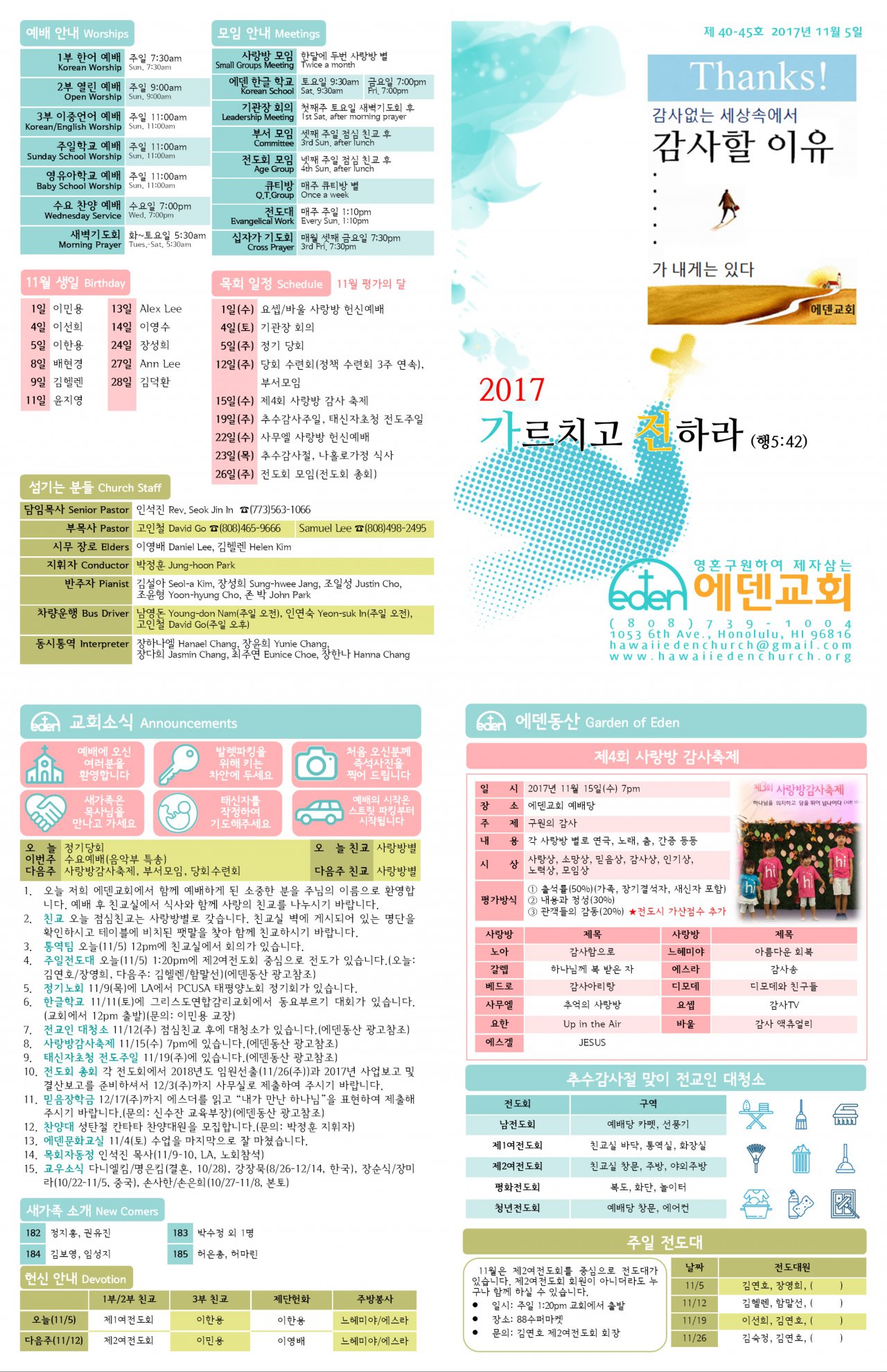 2017/11/05 하와이한인교회 에덴장로교회 주보