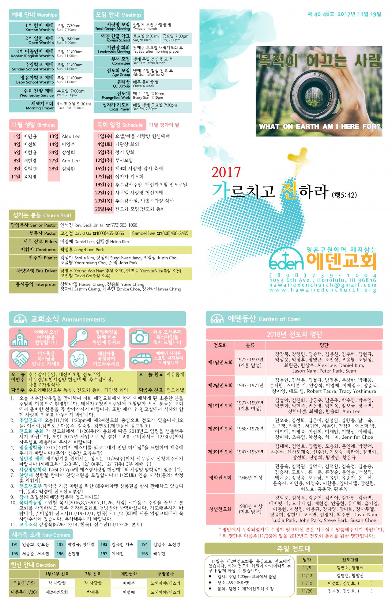 2017/11/19 하와이한인교회 에덴장로교회 주보