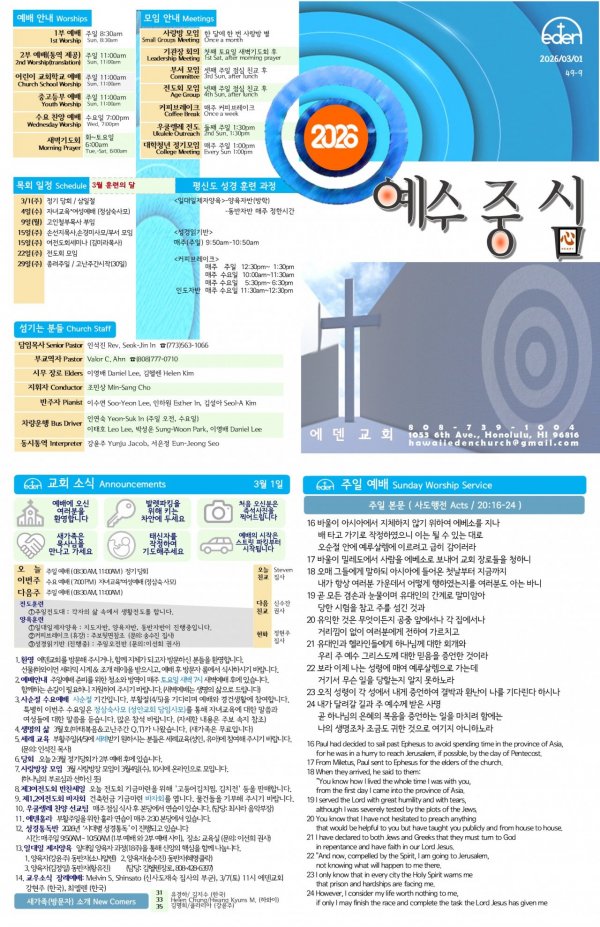 2026/ 3/ 1 하와이한인교회 에덴장로교회 주보