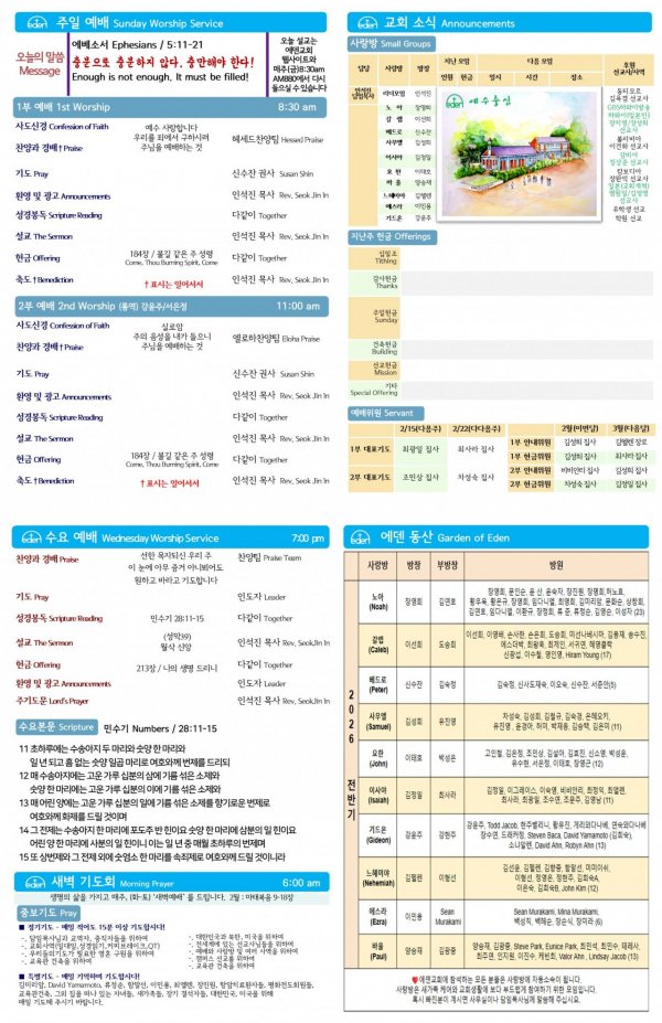 날짜: 2026.02.15 글쓴이 : 에덴교회 | 교회소식