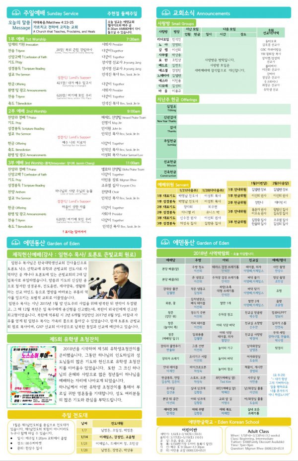 2018/01/14 하와이한인교회 에덴장로교회 주보