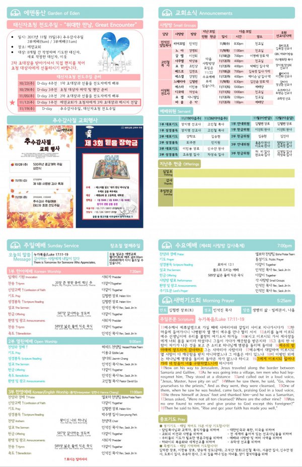 2017/11/12 하와이한인교회 에덴장로교회 주보
