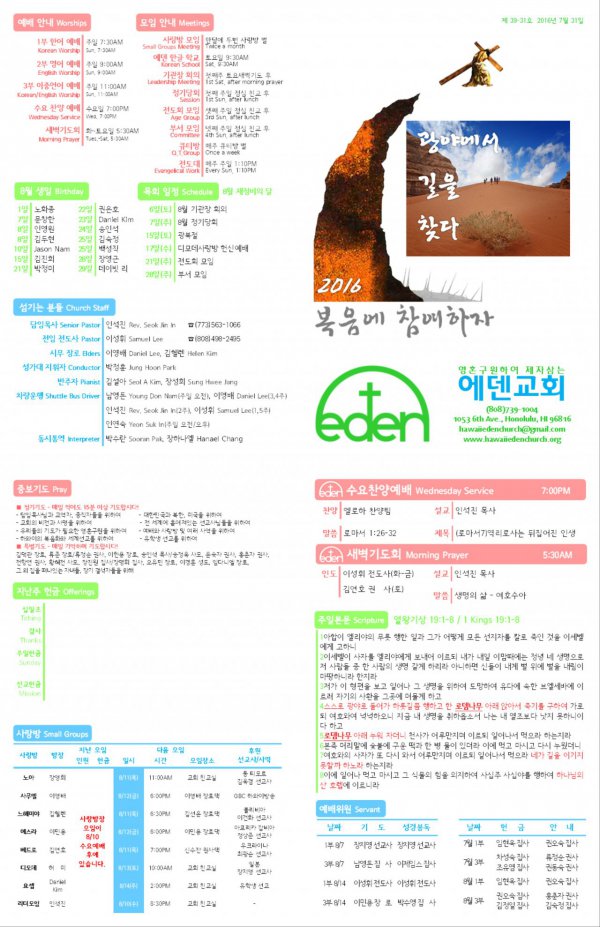 2016/07/31 하와이한인장로교회 에덴교회 주보