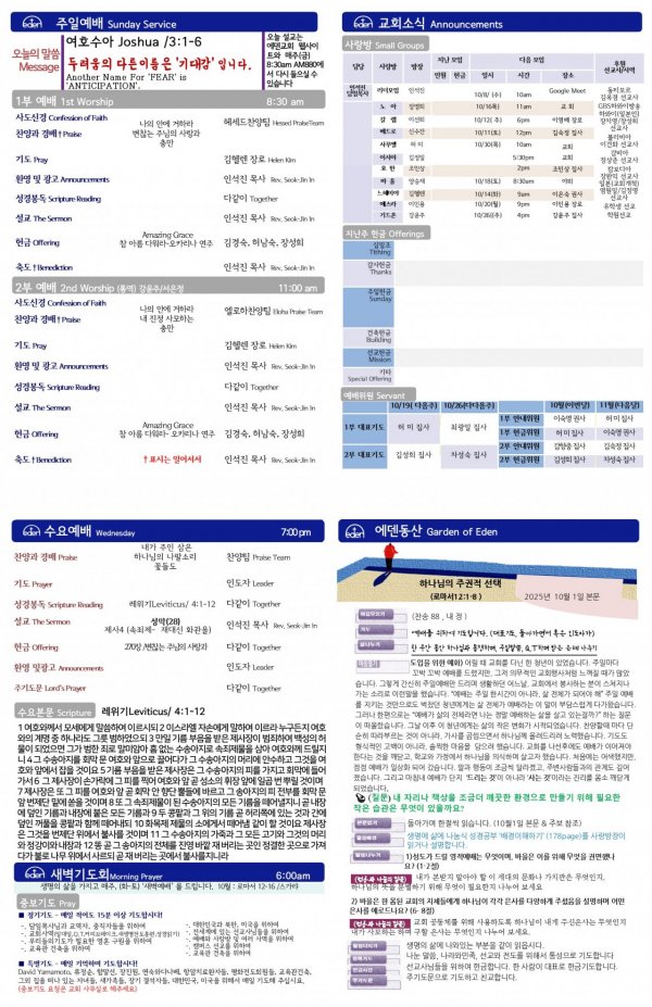 2025/ 10/ 5 하와이한인교회 에덴장로교회 주보
