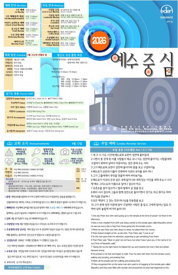 2026/ 4/ 12 하와이한인교회 에덴장로교회 주보